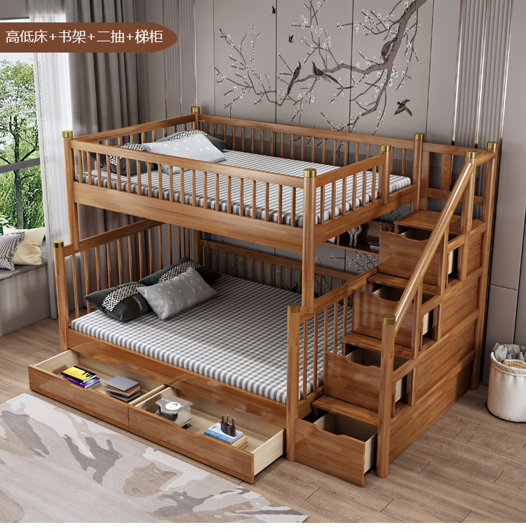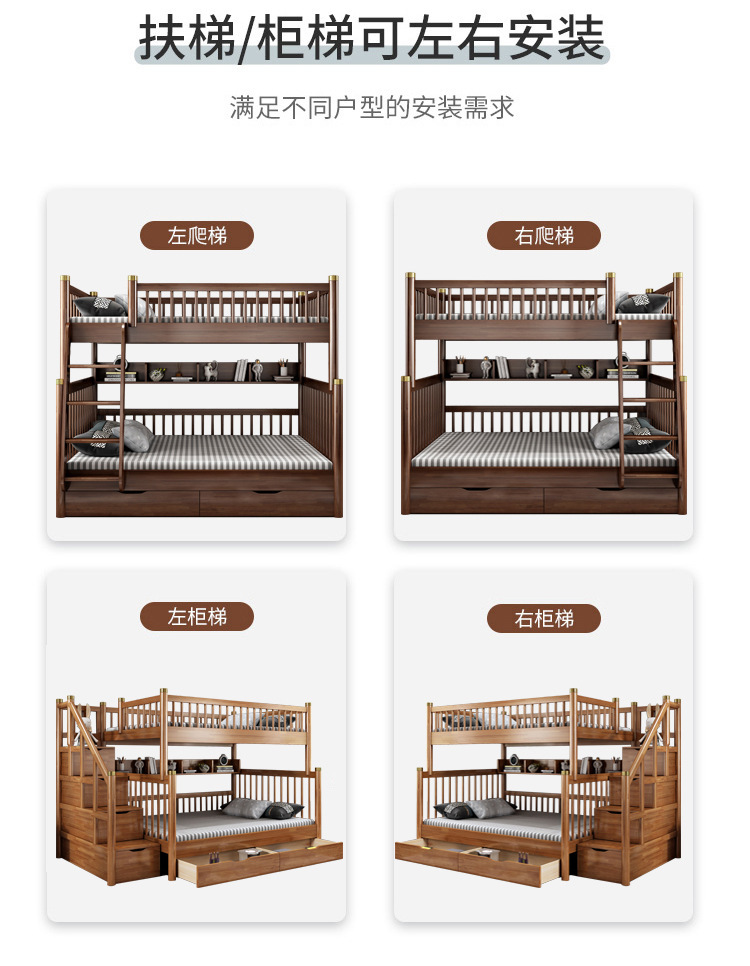 새로운 중국 스타일의 단단한 나무 이층 침대 호두 어린이 이층 침대 간단한 작은 아파트 현대식 높낮이 침대 이층 침대스토어 가기