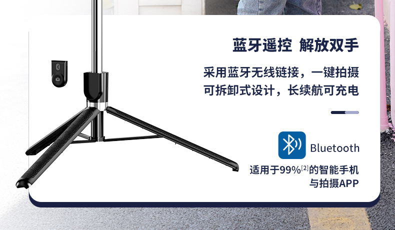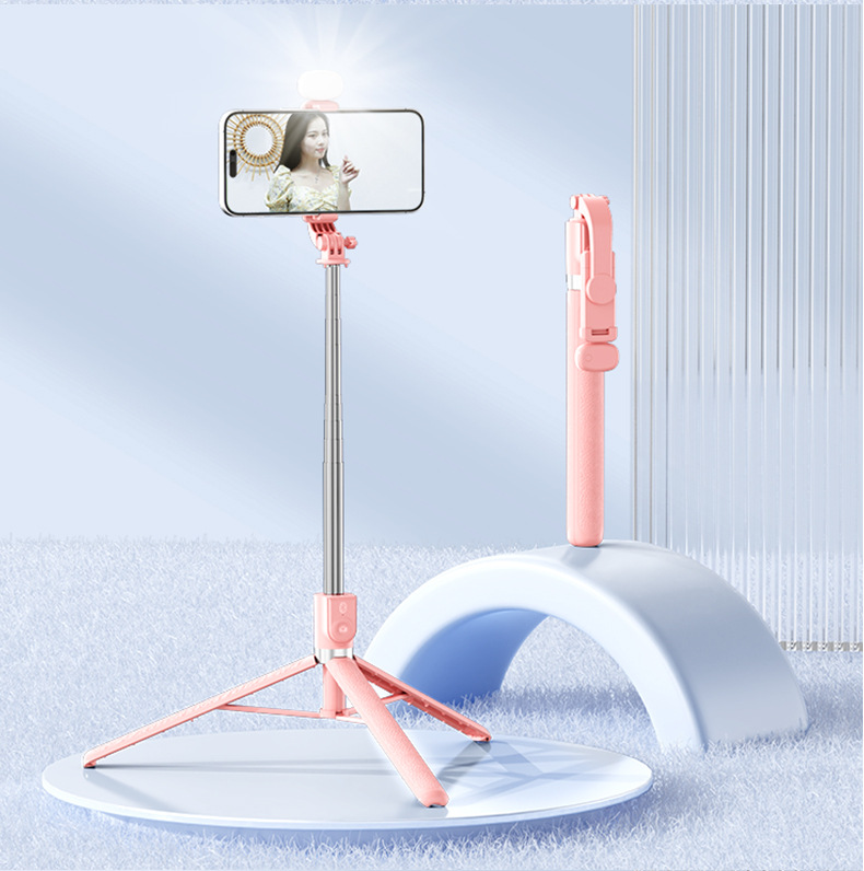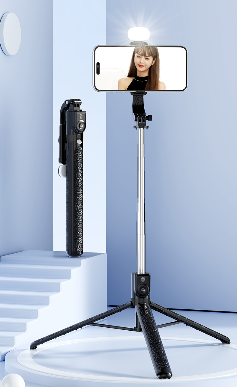 새로운 휴대폰 블루투스 셀카봉, 바닥에 놓아도 안정적인 삼각대, 야외 휴대용 라이브 방송 및 사진 촬영용 다기능 휴대폰 거치대