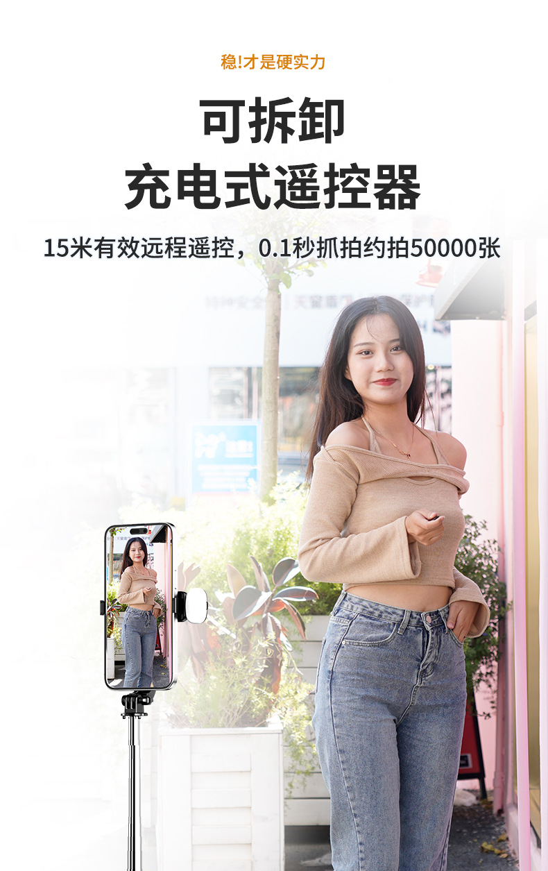 새로운 휴대폰 블루투스 셀카봉, 바닥에 놓아도 안정적인 삼각대, 야외 휴대용 라이브 방송 및 사진 촬영용 다기능 휴대폰 거치대스토어 가기