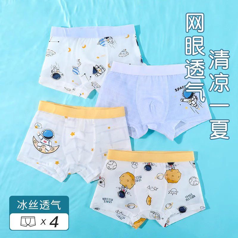 여름 어린이 속옷 소년 순면 복서 사각형 아기 어린이 소년 중대형 어린이 얼음 실크 청소년 반바지스토어 가기
