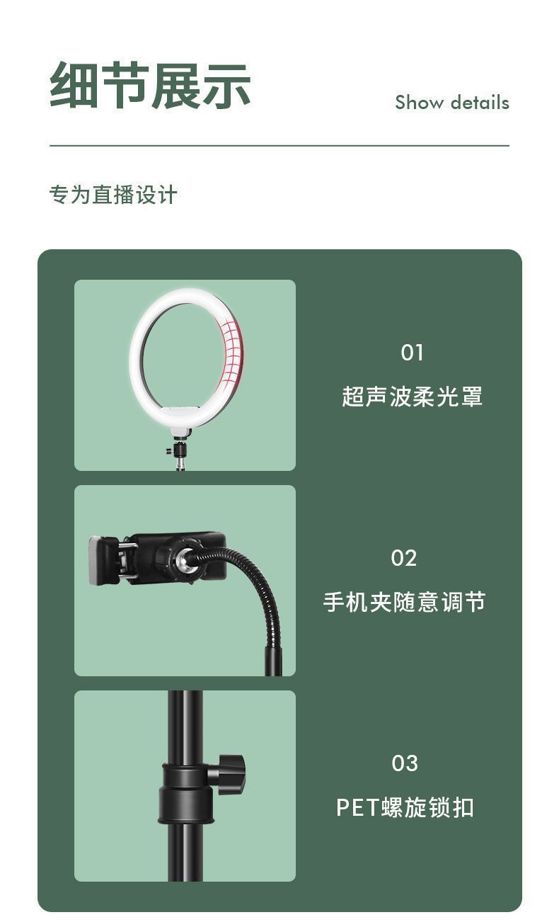 휴대폰 홀더, Douyin 라이브 방송, 사진 촬영을 위한 다기능 플로어 스탠딩 삼각대, Kuaishou 조명, 범용 셀카봉스토어 가기