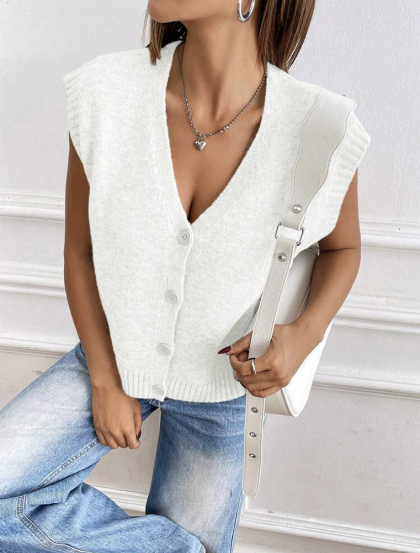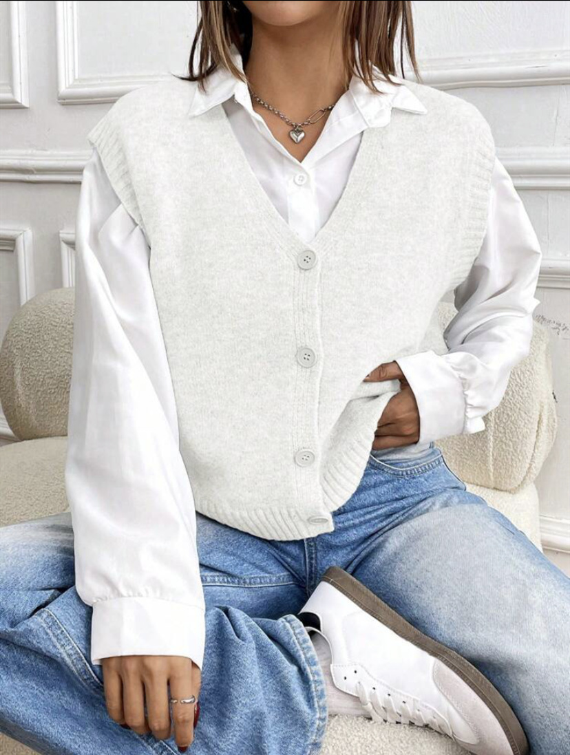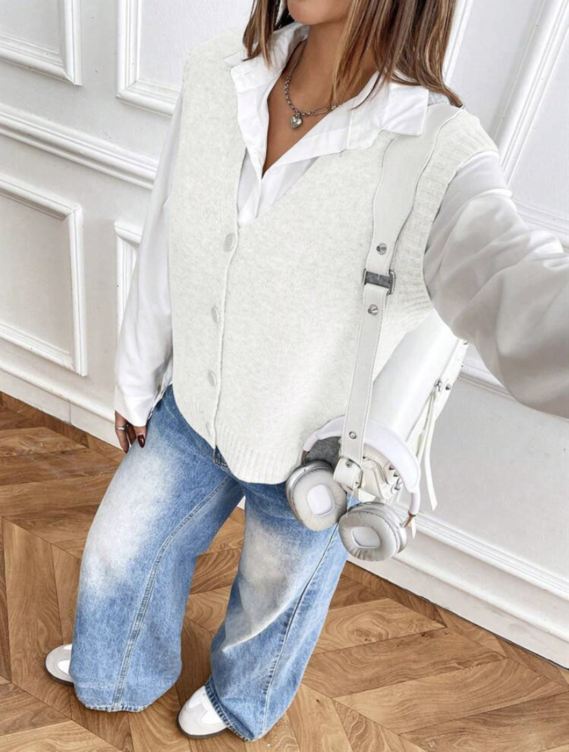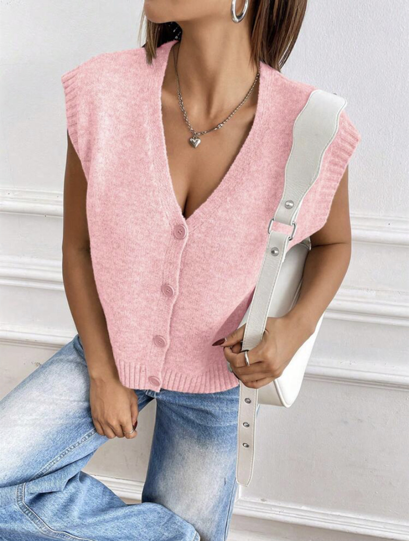 아마존의 새로운 스타일 민소매 솔리드 컬러 스웨터 조끼 작은 카디건 일본식 레이어드 니트 조끼 여성용스토어 가기
