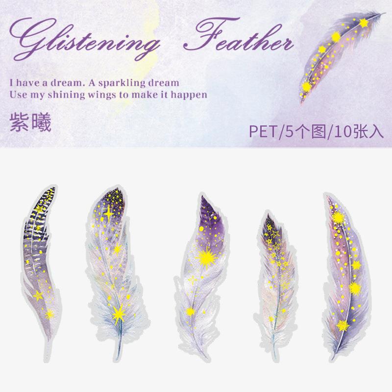 반짝이는 깃털 시리즈 아름다운 하루 PET 스티커 대형 핸드북 장식 재료 스티커 8가지 스타일 10개