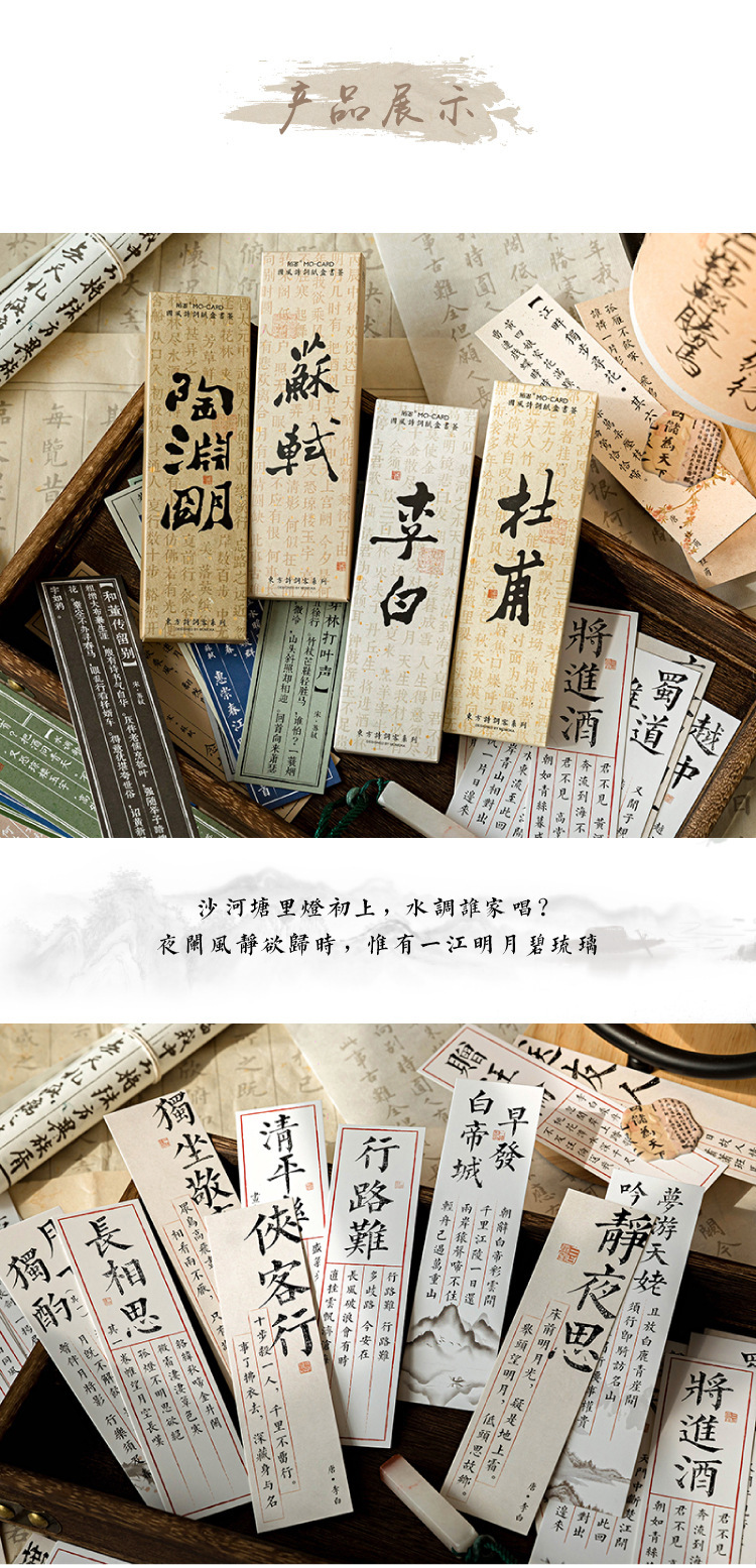 Momo Oriental Poetry Series 박스형 책갈피 중국 스타일 유명인 고대 시 독서 메모 노트 자료스토어 가기