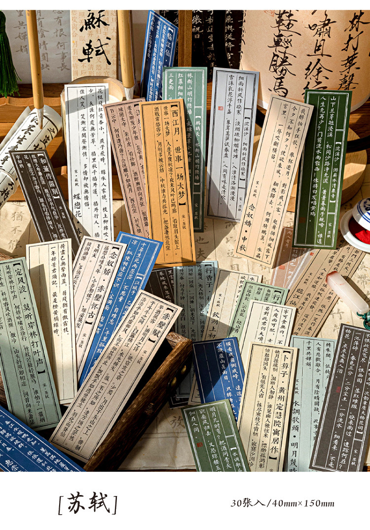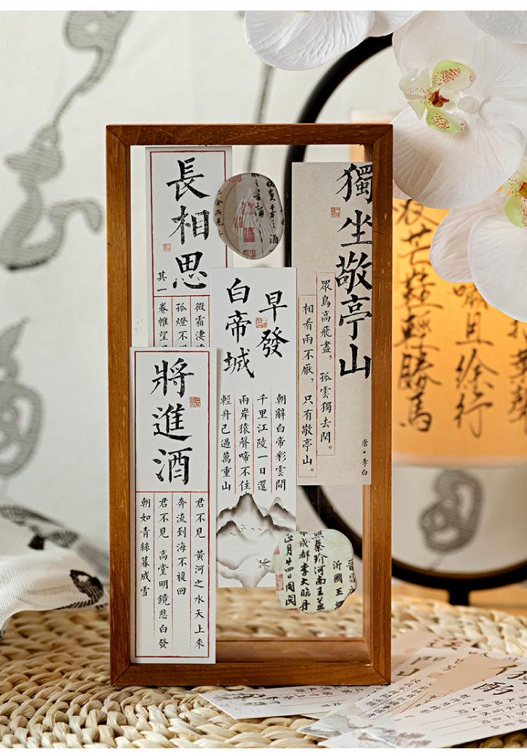 Momo Oriental Poetry Series 박스형 책갈피 중국 스타일 유명인 고대 시 독서 메모 노트 자료