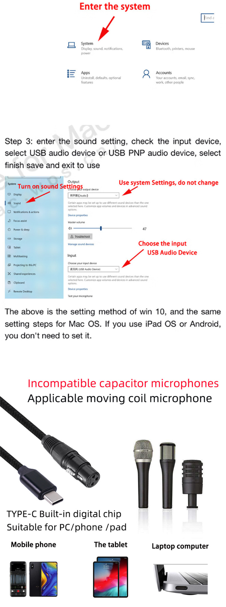 국경 간 공급 USB C-카논 암수 오디오 케이블 XLR 마이크 어댑터 케이블 유형 c-카논 케이블스토어 가기