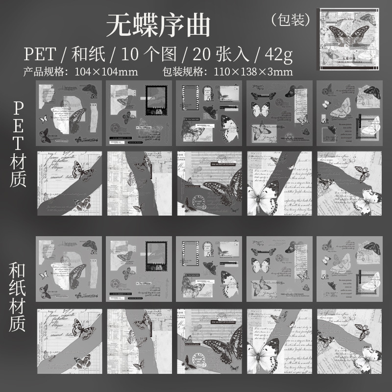 Wandie Poetry 시리즈 토마토 소스 소녀 PET 스티커 나비 테마 콜라주 다이 컷 핸드북 20 시트 4 스타일