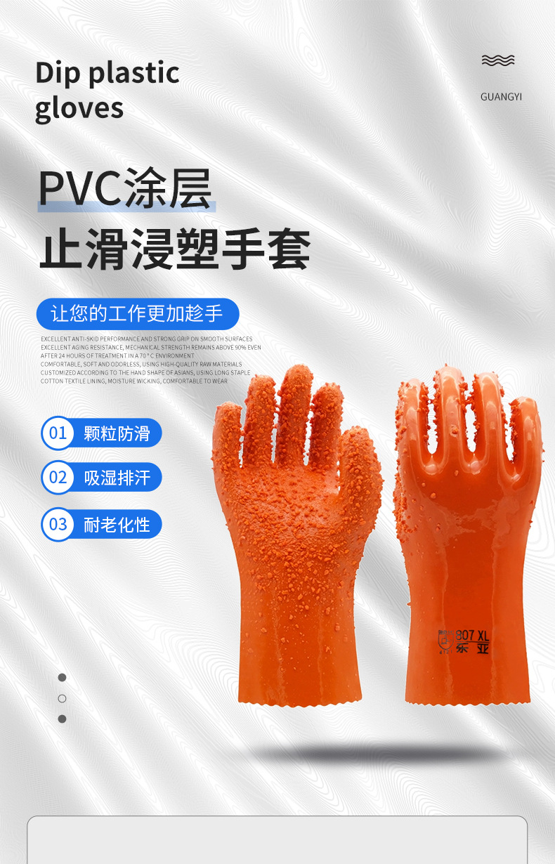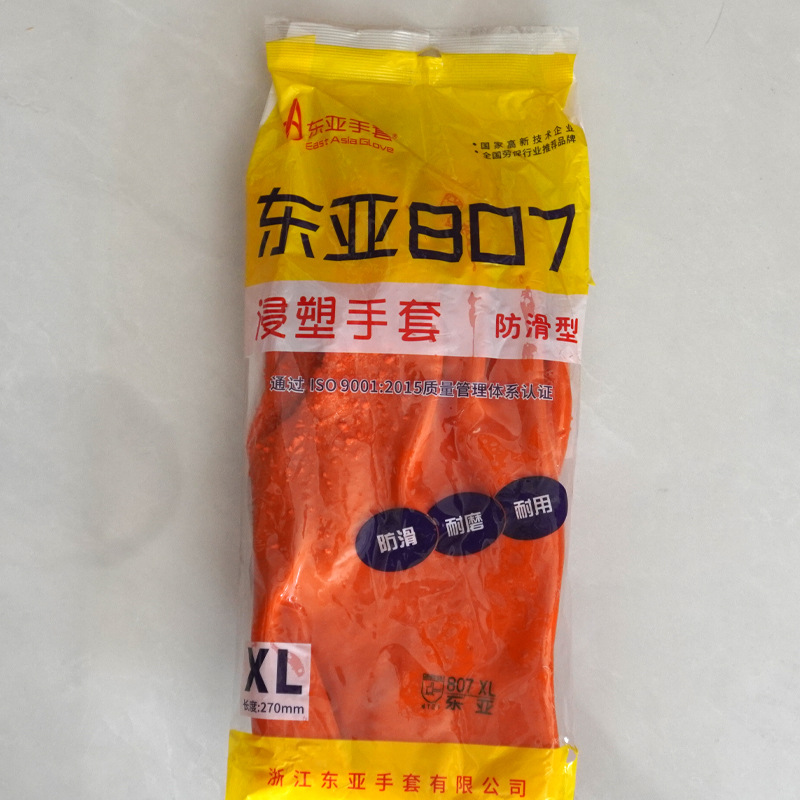 동아시아 807 미끄럼 방지 장갑 완전히 점착된 입자 산 및 알칼리 방지 및 내유성 산업용 완전 점착 미끄럼 방지 노동 보호 장갑스토어 가기