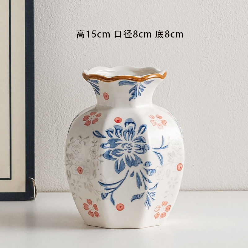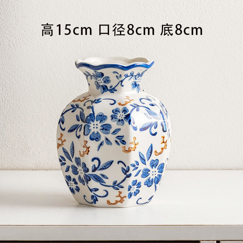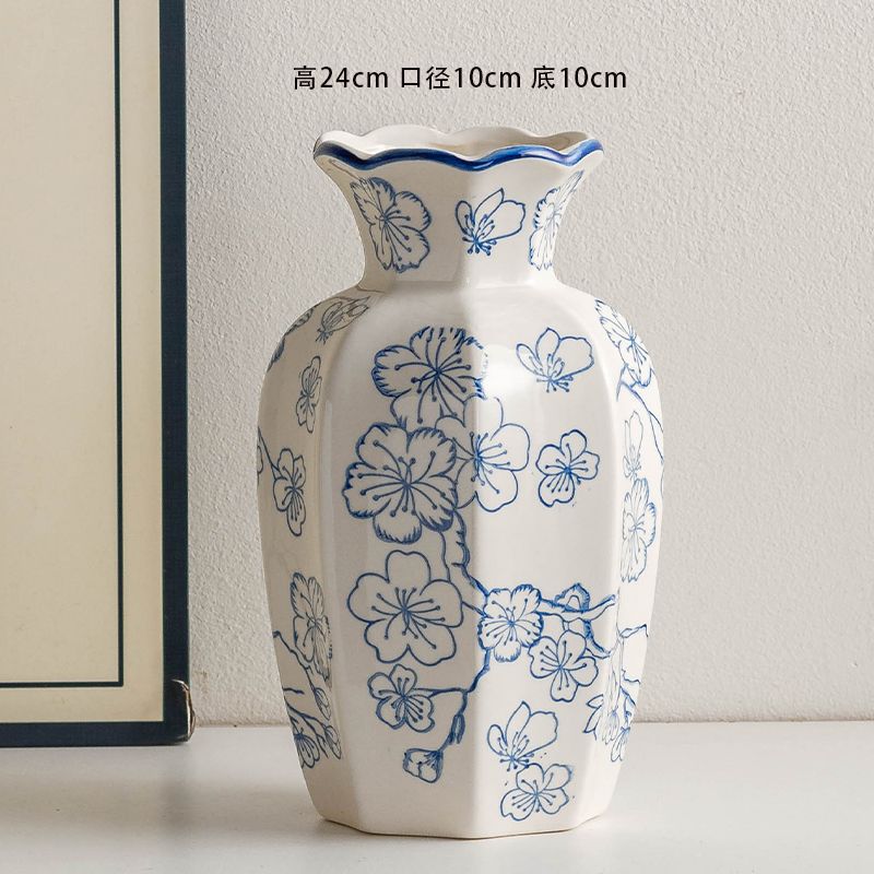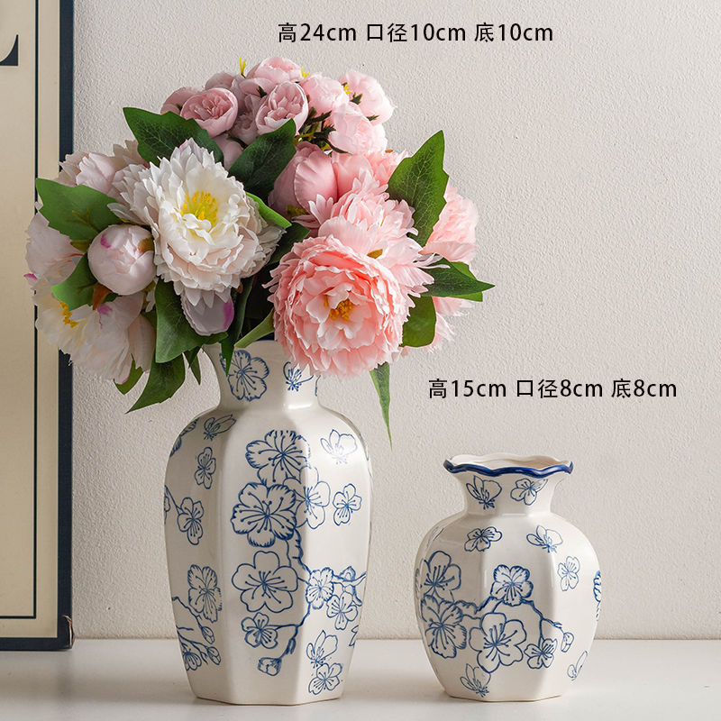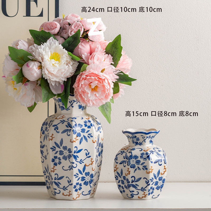 중국 고급 파란색과 흰색 도자기 복고풍 입구 세라믹 꽃병 홈 거실 꽃꽂이 장식 장식품 수경 꽃스토어 가기