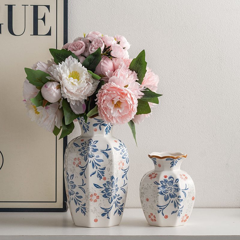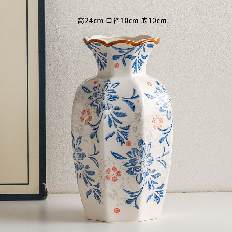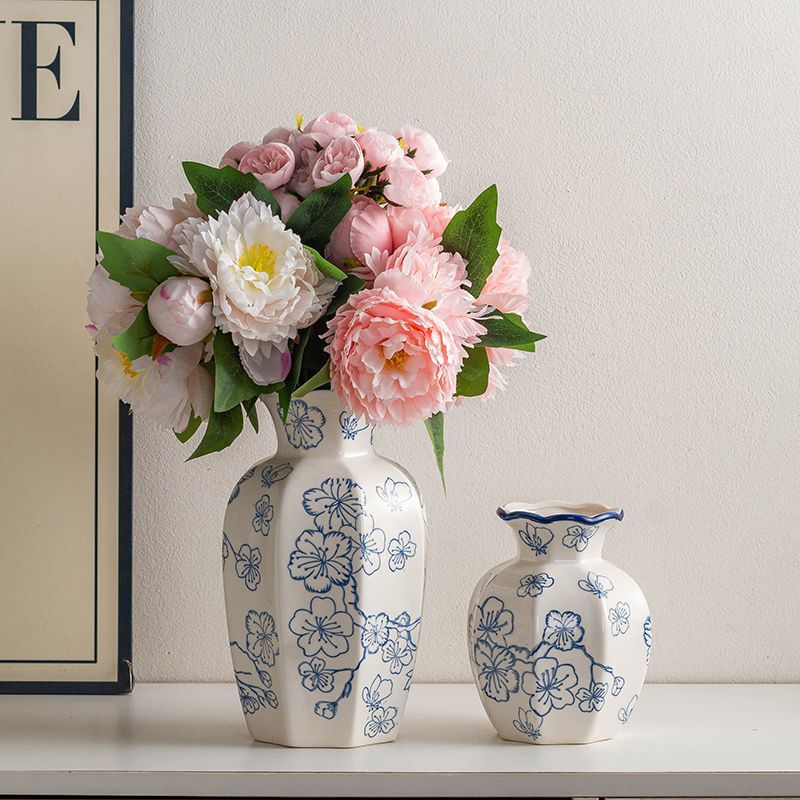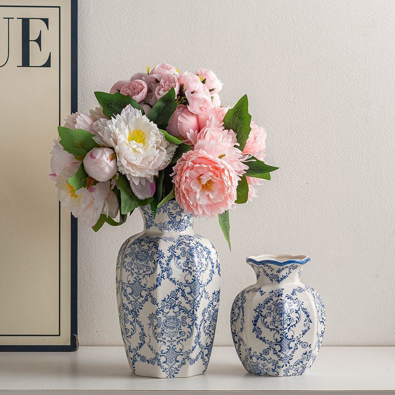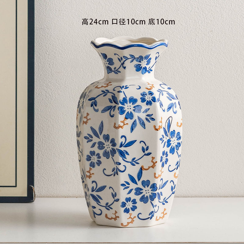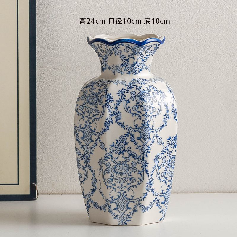 중국 고급 파란색과 흰색 도자기 복고풍 입구 세라믹 꽃병 홈 거실 꽃꽂이 장식 장식품 수경 꽃