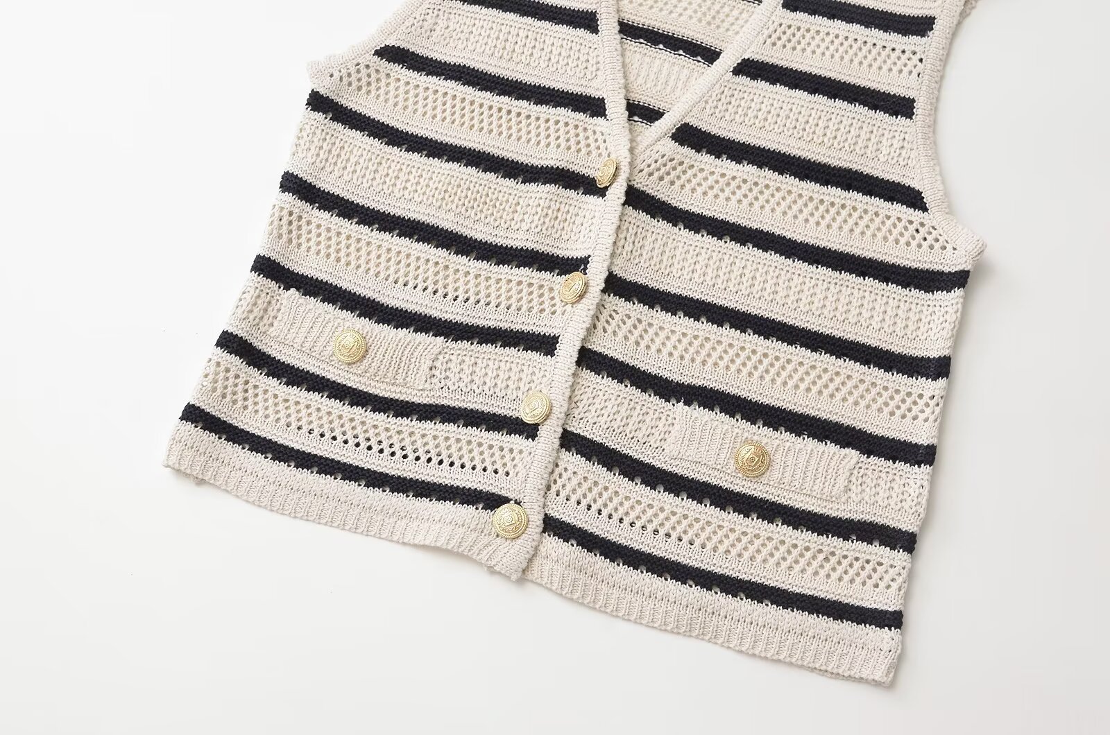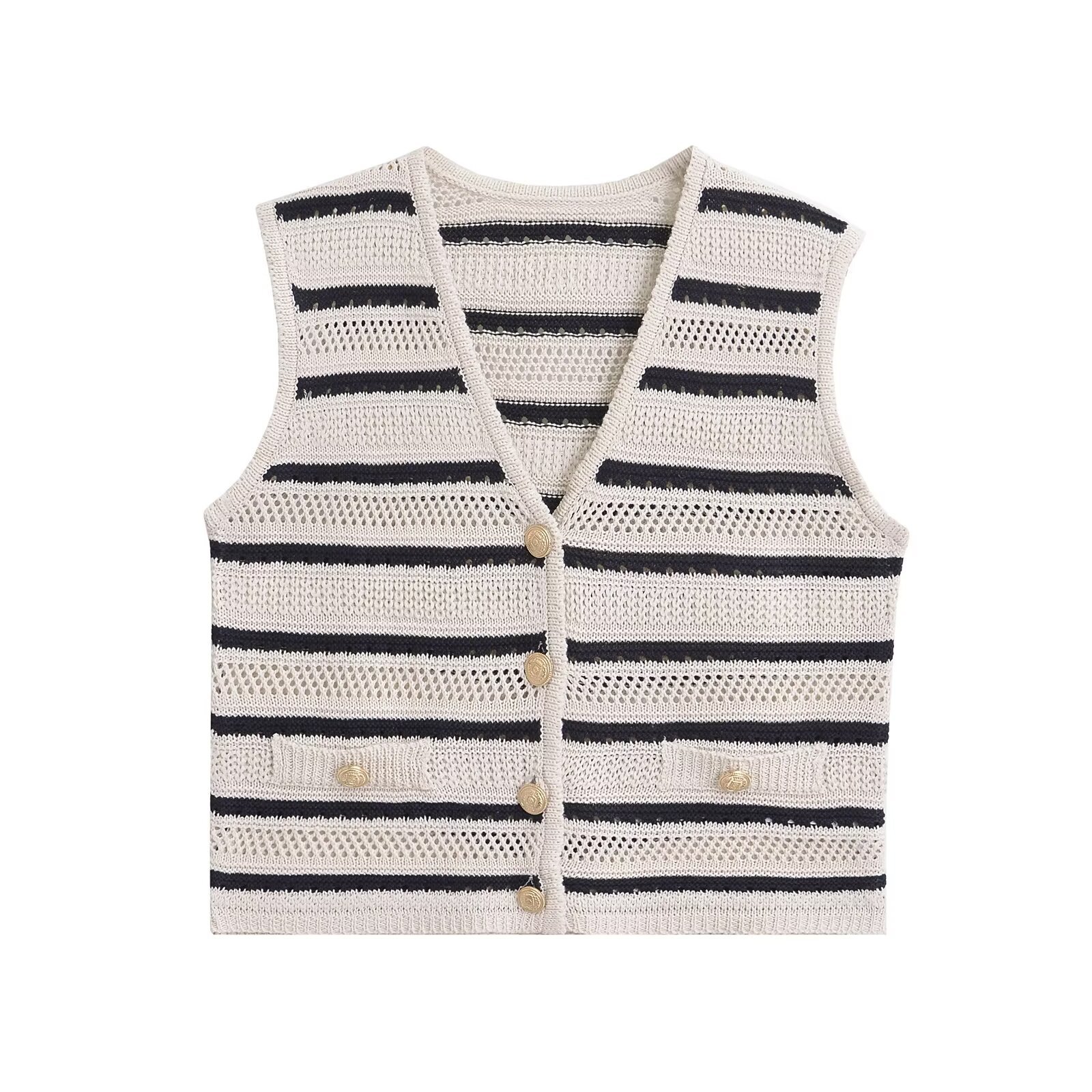 ZARO 수제 유럽과 미국 스타일 2025 봄 신작 여성 기질 니트 스트라이프 카디건 조끼