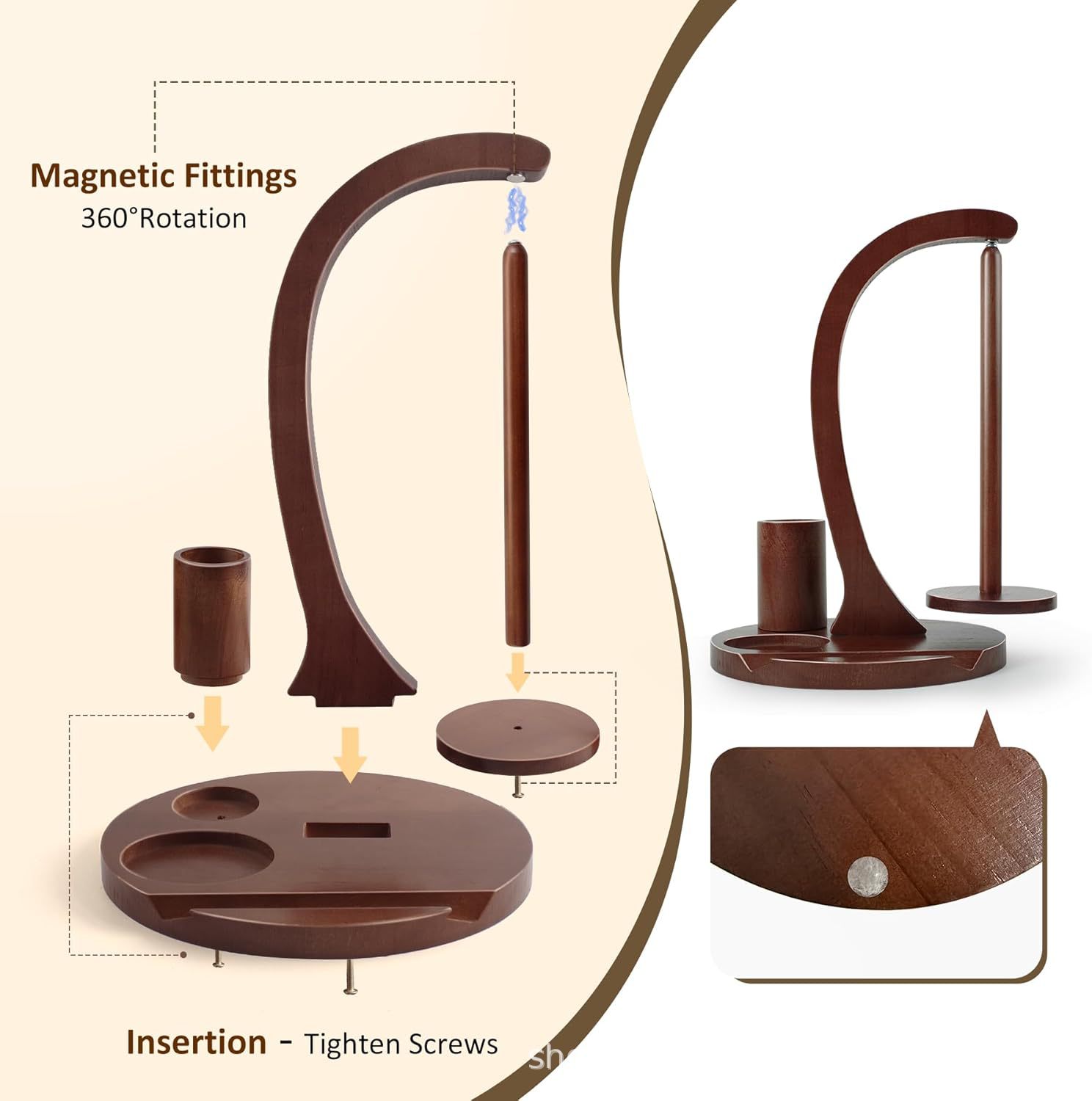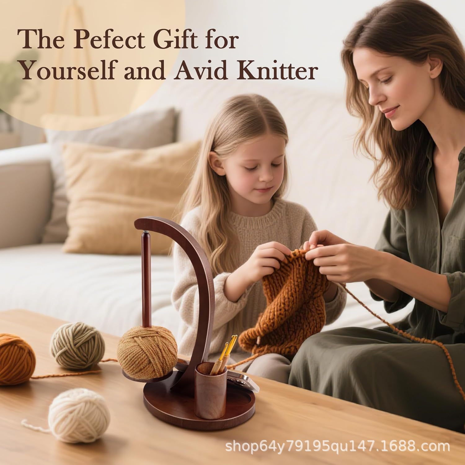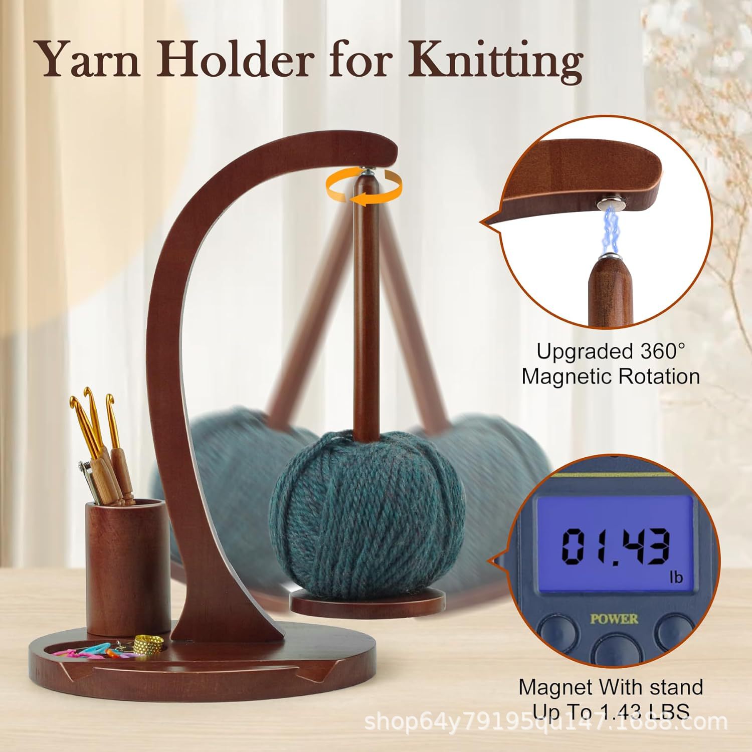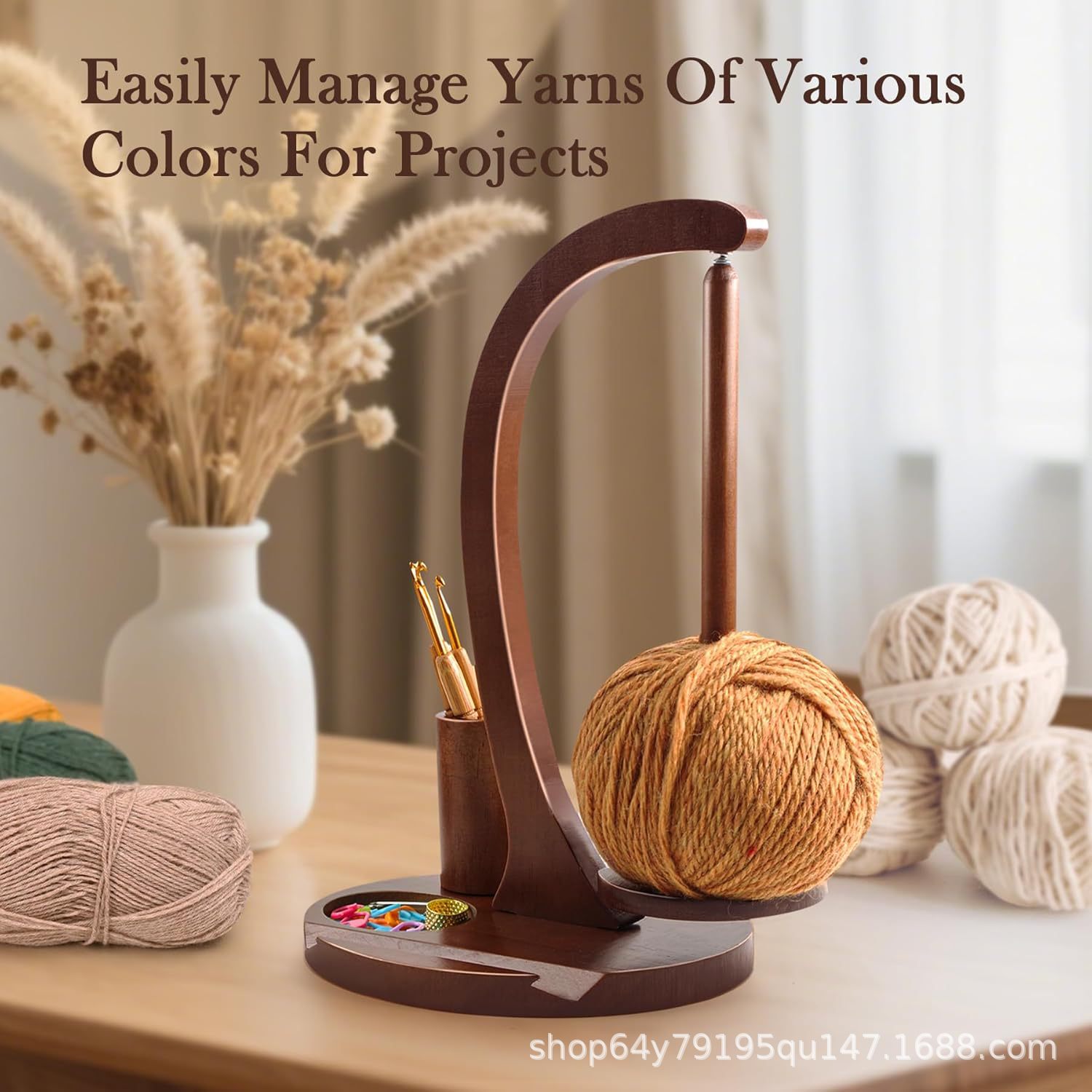 나무로 만든 회전식 가정용 자석식 손뜨개질 실꽂이 도구, 실 보관 데스크탑 정리대스토어 가기