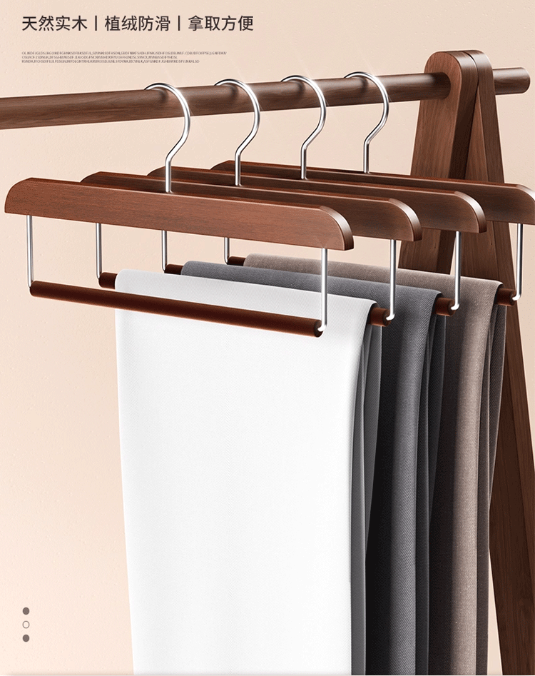 단단한 나무 플록 바지 걸이, 흔적 없는 미끄럼 방지 바지 걸이, 가정용 나무 바지 보관 걸이, 옷장 바지 걸이 도매