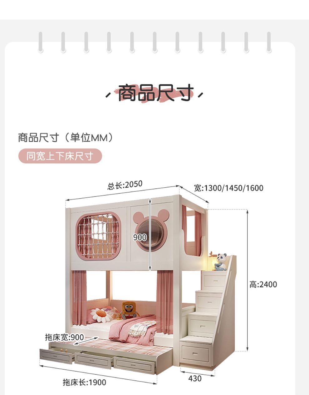 • 높고 낮은 침대 + 서랍 3개 + 사다리 캐비닛 + 슬라이드