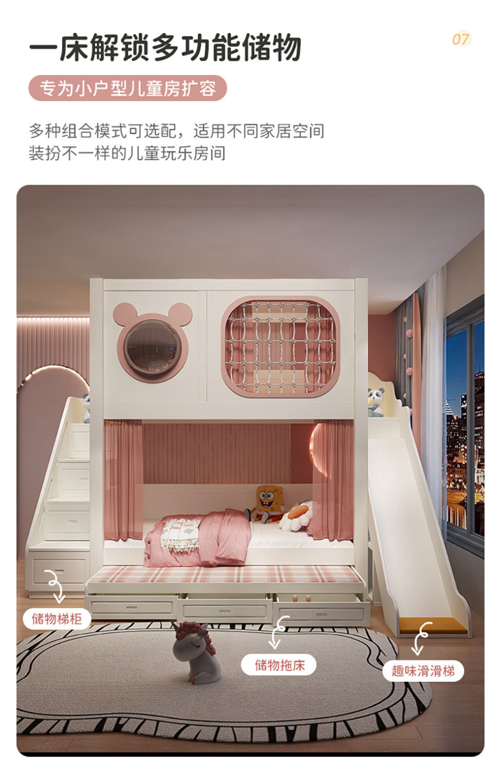 • 높고 낮은 침대 + 높은 상자 + 사다리 캐비닛 + 슬라이드