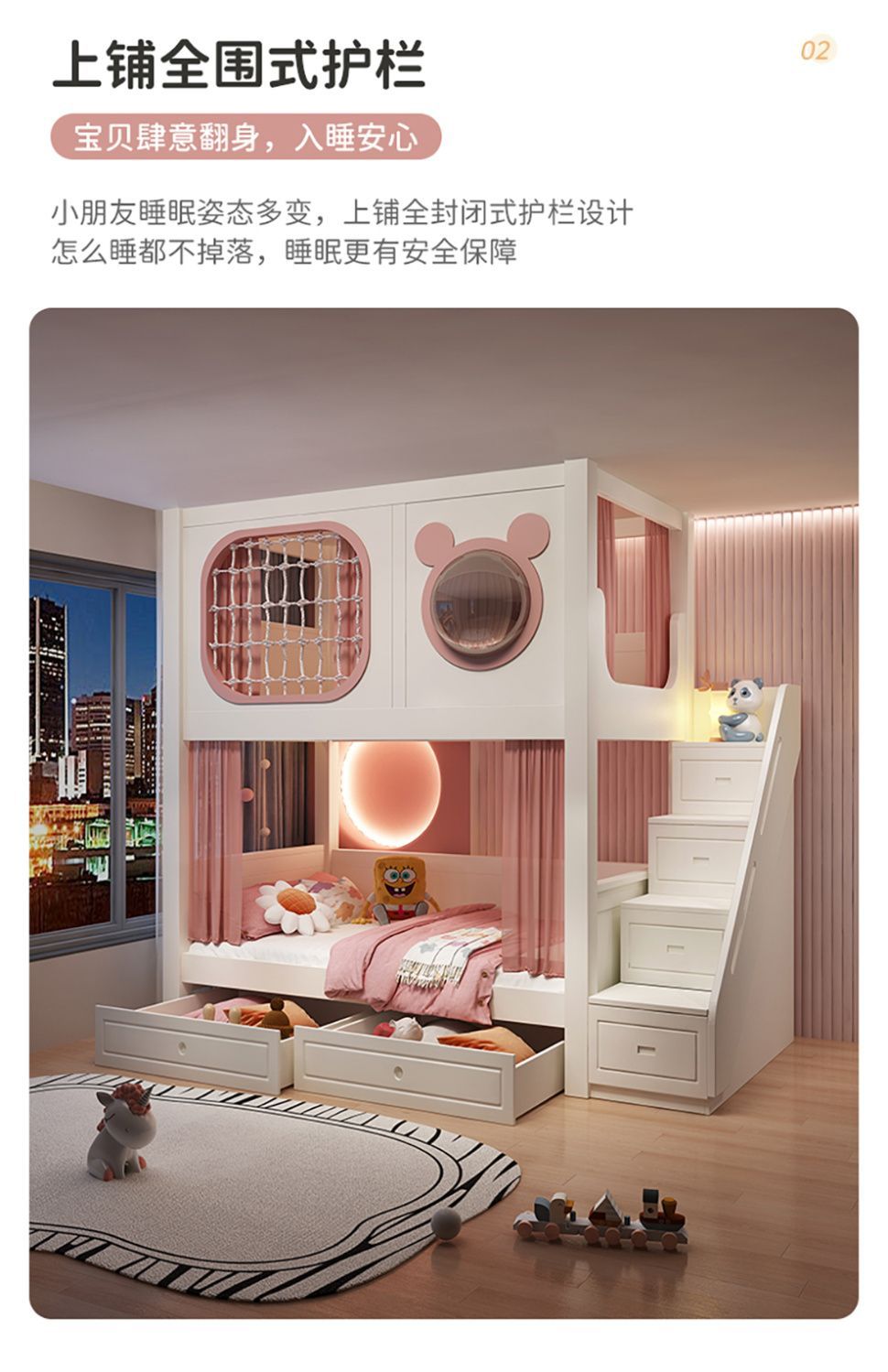 스페이스 캡슐 이층 침대 어린이 이층 침대 소녀 공주 침대 높낮이 이층 침대 트리 하우스 이층 침대