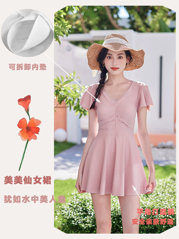 30년 수영복 공장 25세 여성용 패셔너블한 작은 플라잉 슬리브 드레스 스타일 수영복, 슬림한 하이웨이스트 수영복, 뚱뚱한 여성을 위한 플러스 사이즈