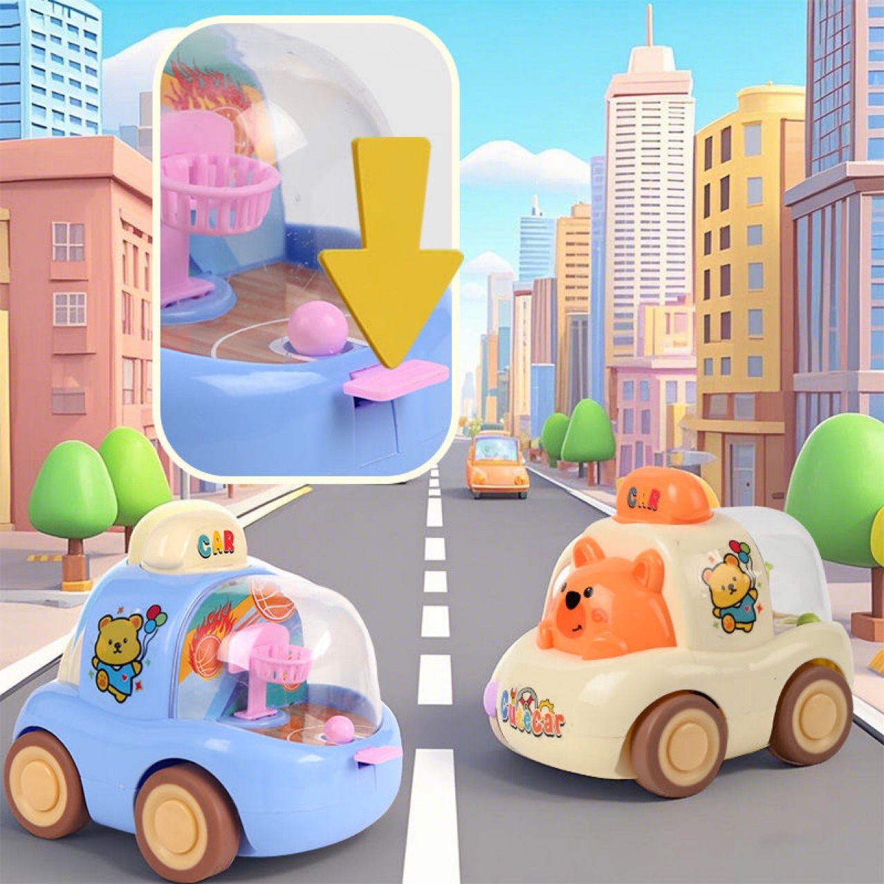 인터넷 연예인 인기 어린이 장난감 자동차 만화 귀여운 프레스 슈팅 머신 관성 자동차 투인원 소년 선물스토어 가기