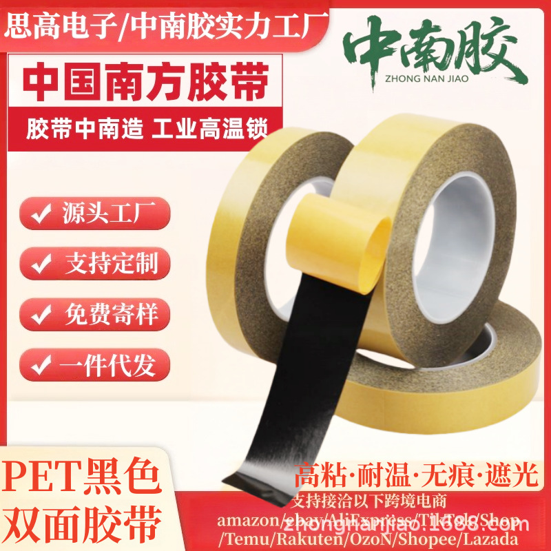 厂家生产 耐高温黑色双面胶 PET双面胶带0.1 PET高温黑色双面胶带