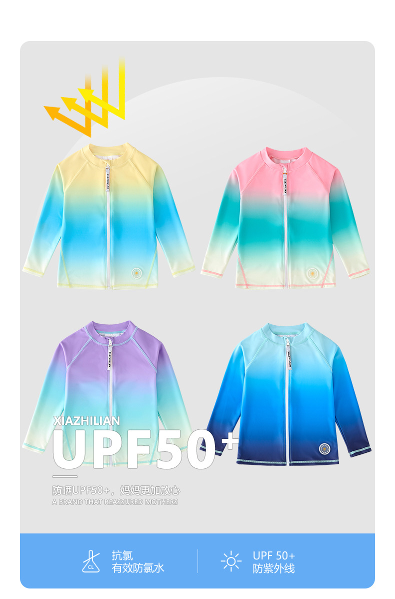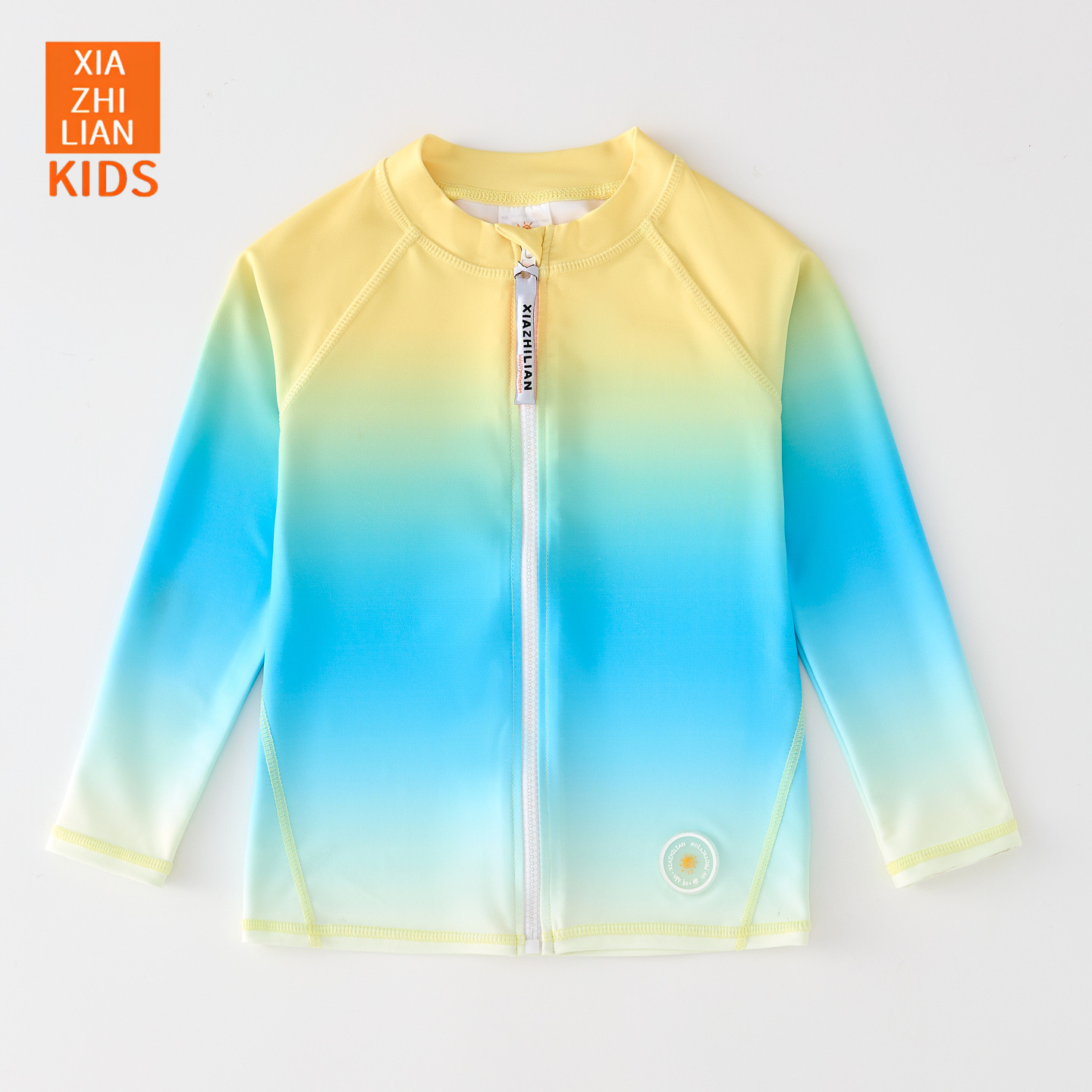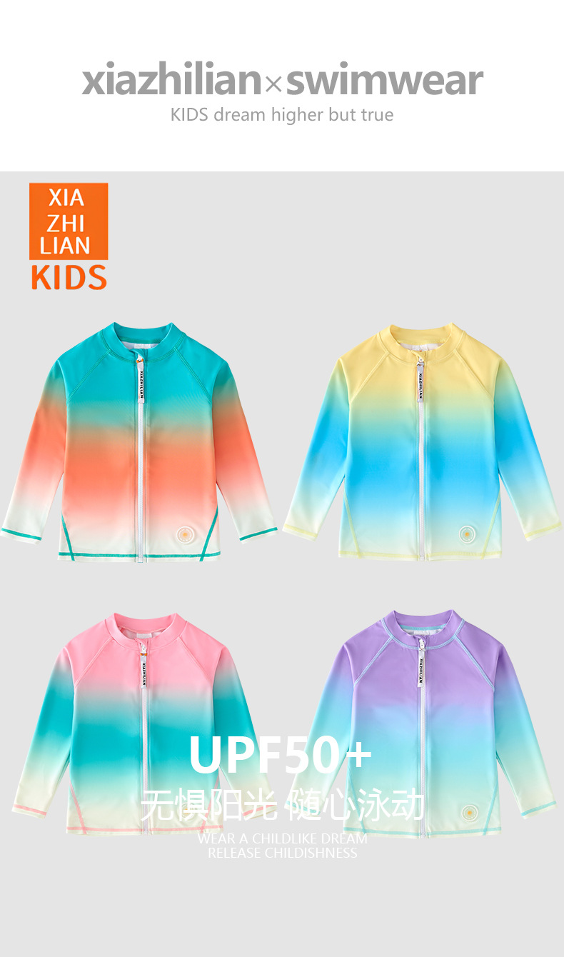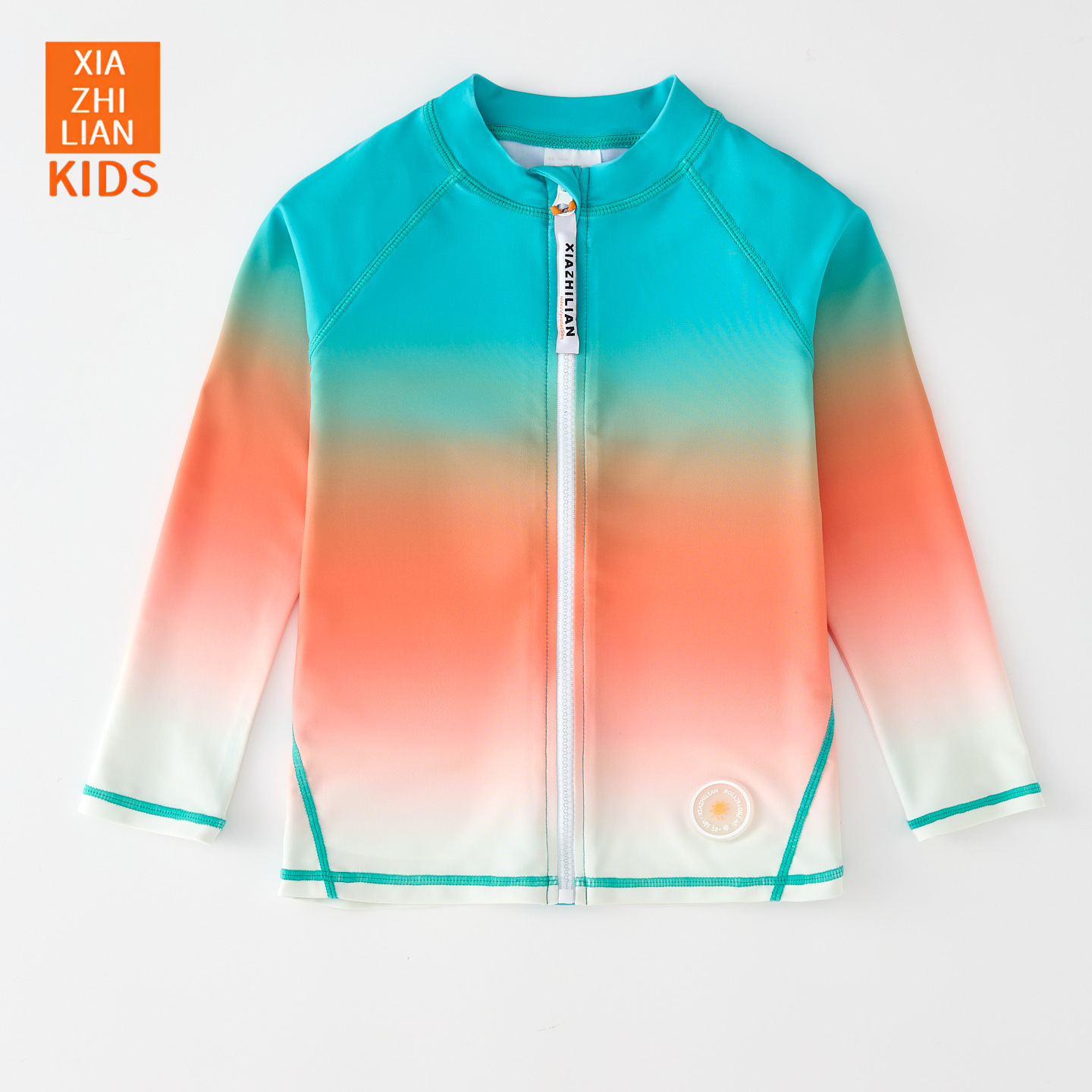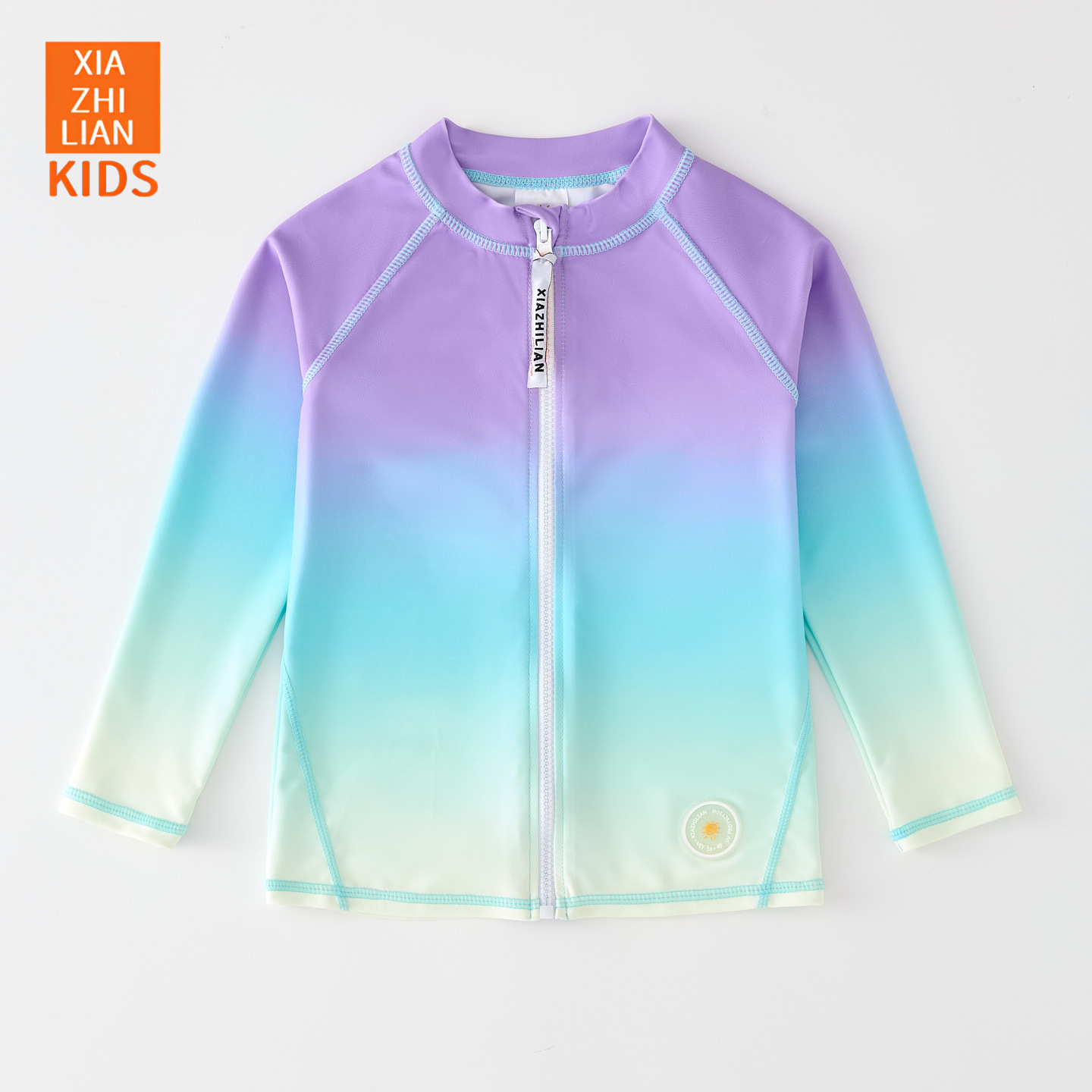 百搭多巴胺色儿童泳衣拉链单上衣男童女童沙滩防晒冲浪服青少年潮
