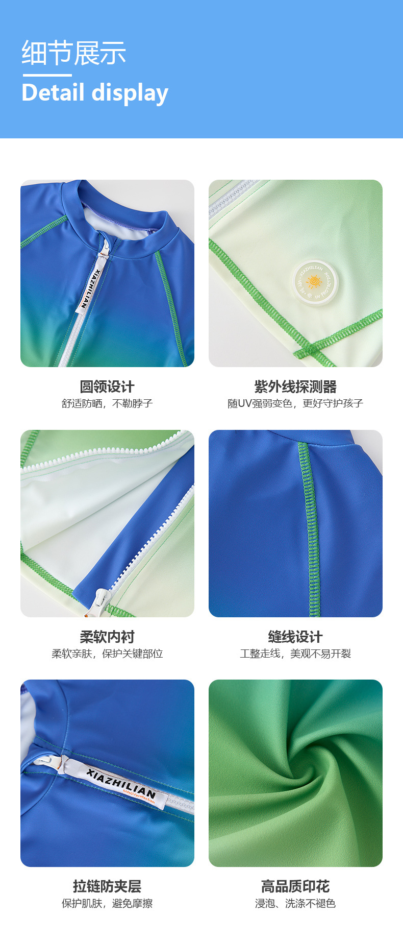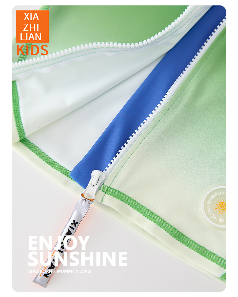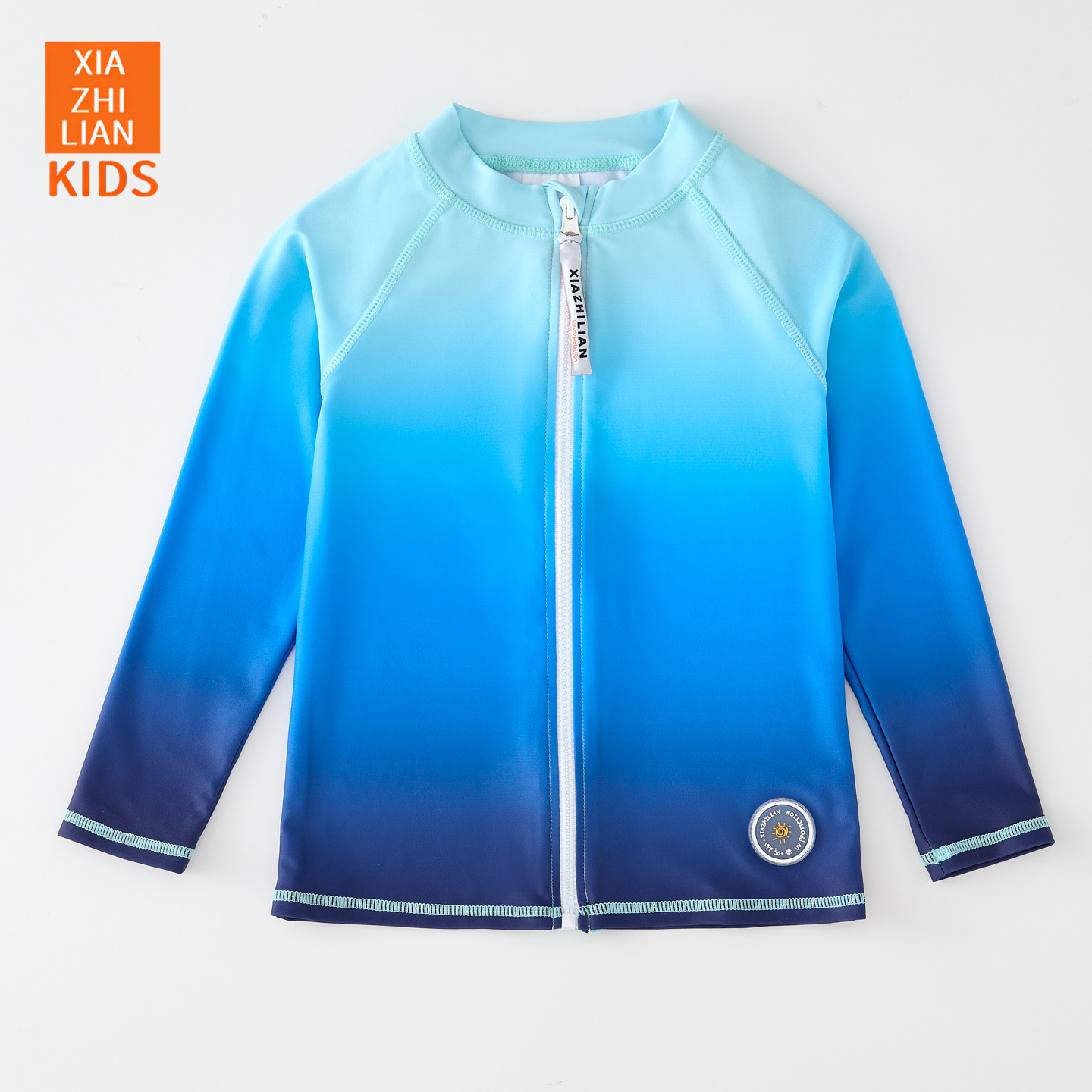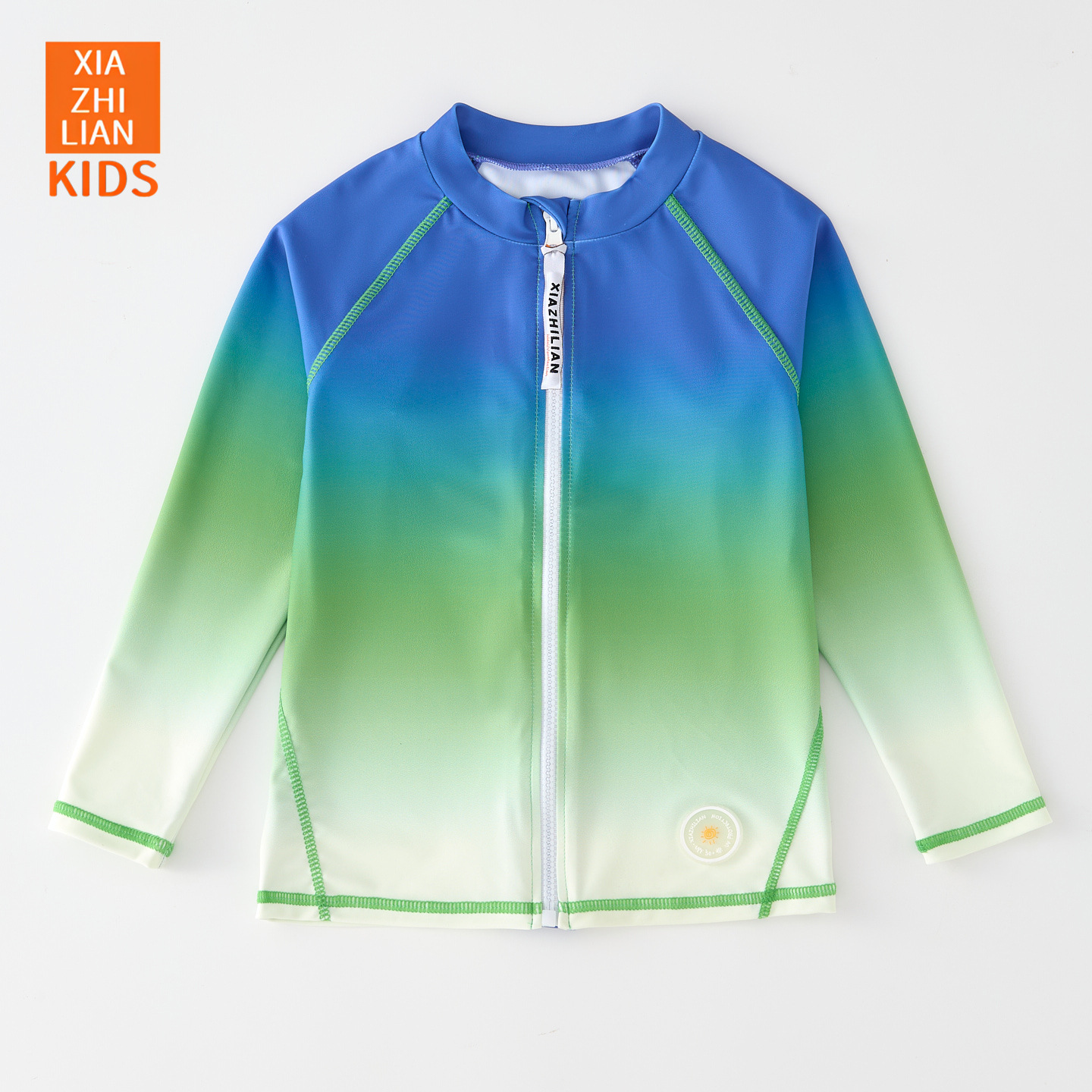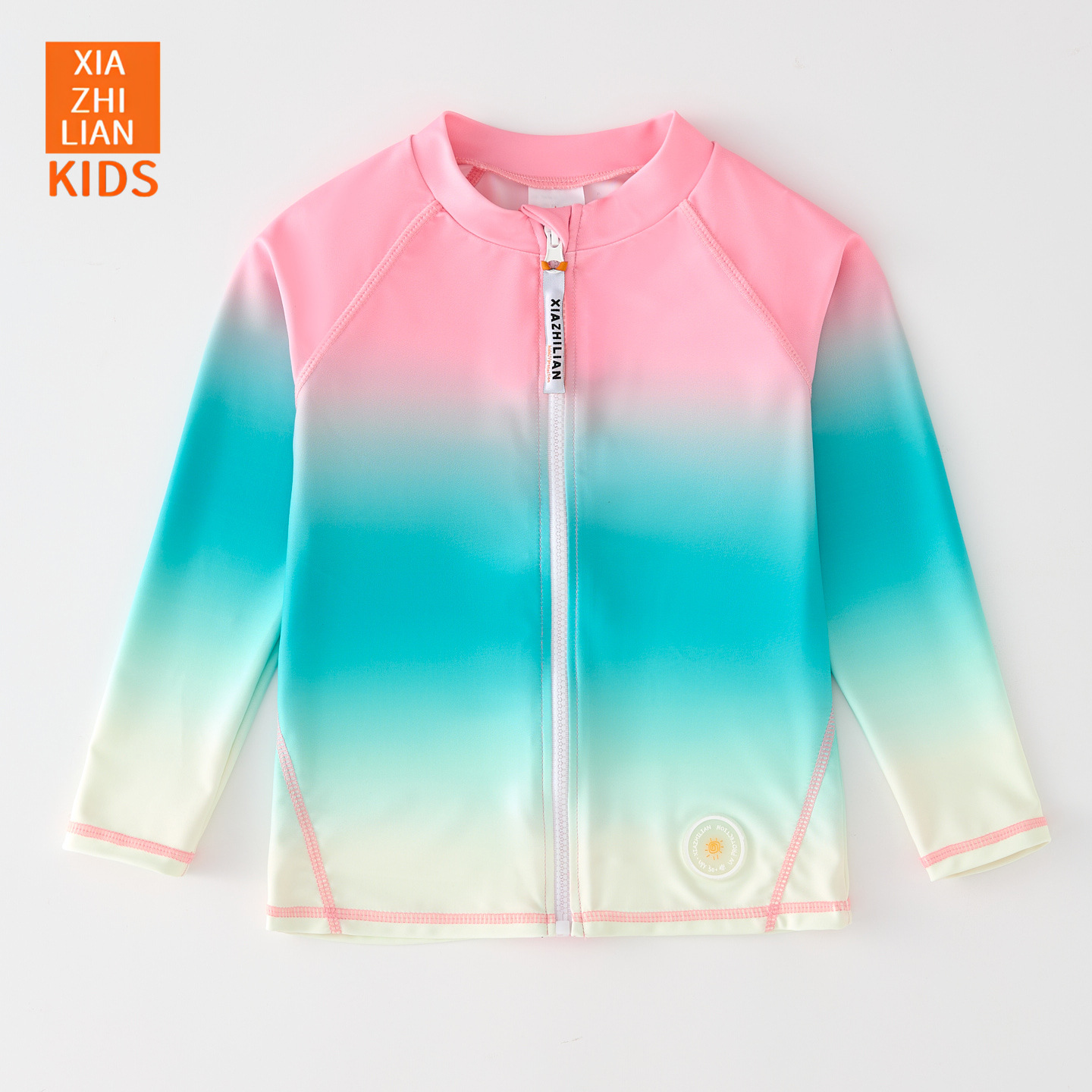 百搭多巴胺色儿童泳衣拉链单上衣男童女童沙滩防晒冲浪服青少年潮