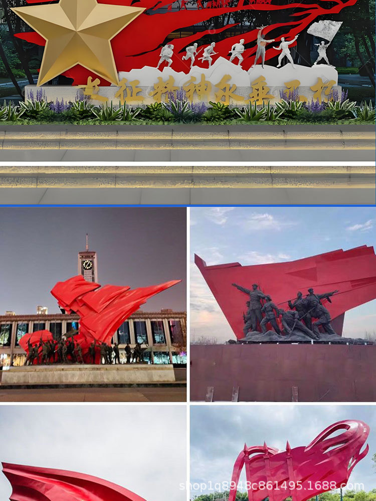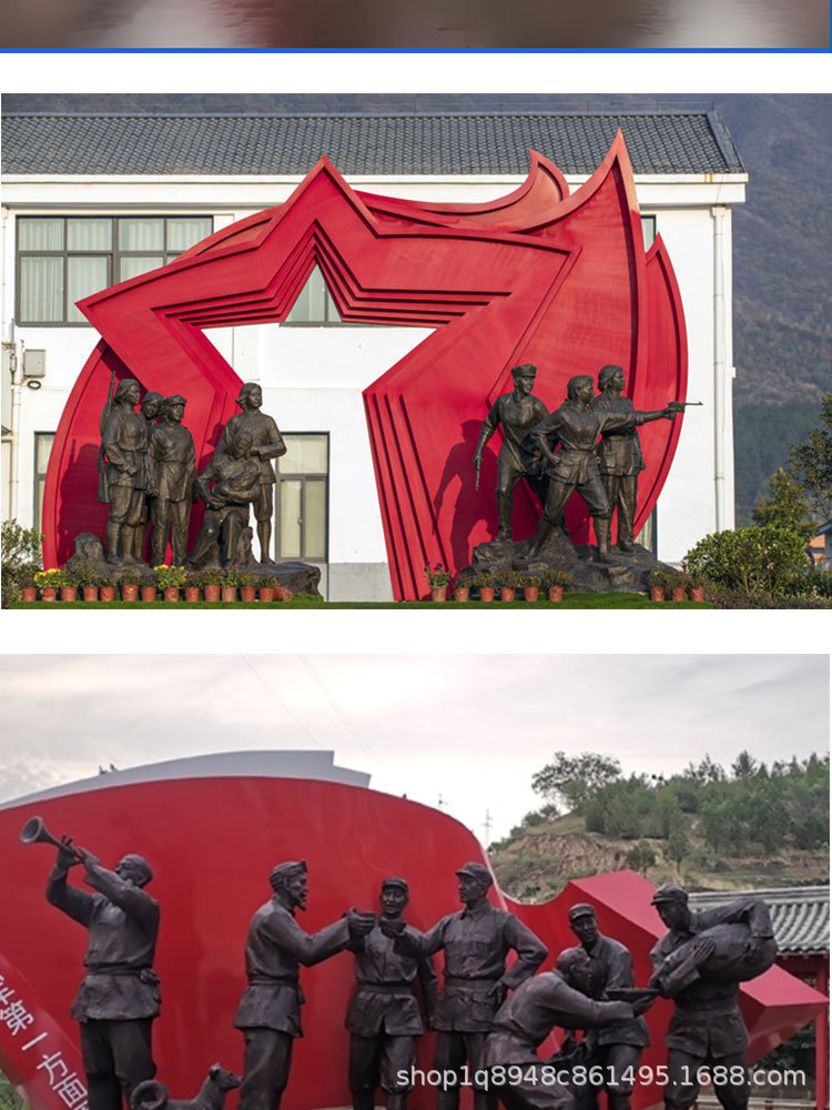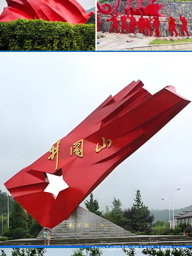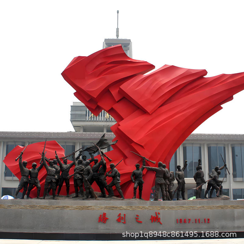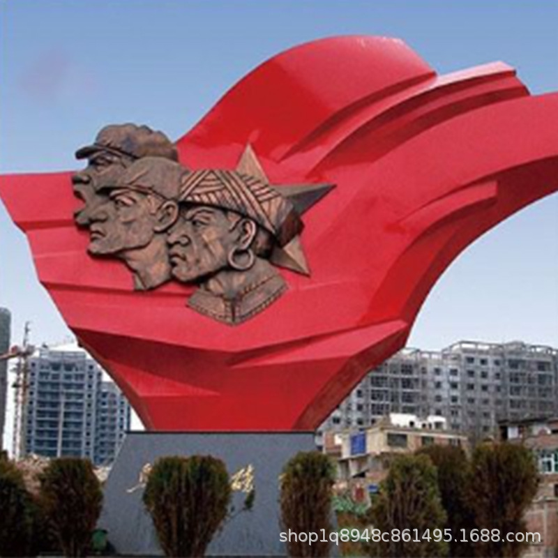 스테인리스 스틸 레드 컬러 문화 테마 조각상, 야외 대형 유리섬유 혁명적 경관 광장 장식품스토어 가기