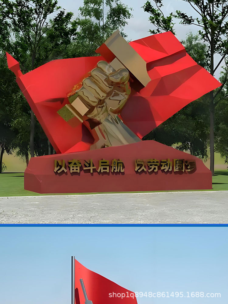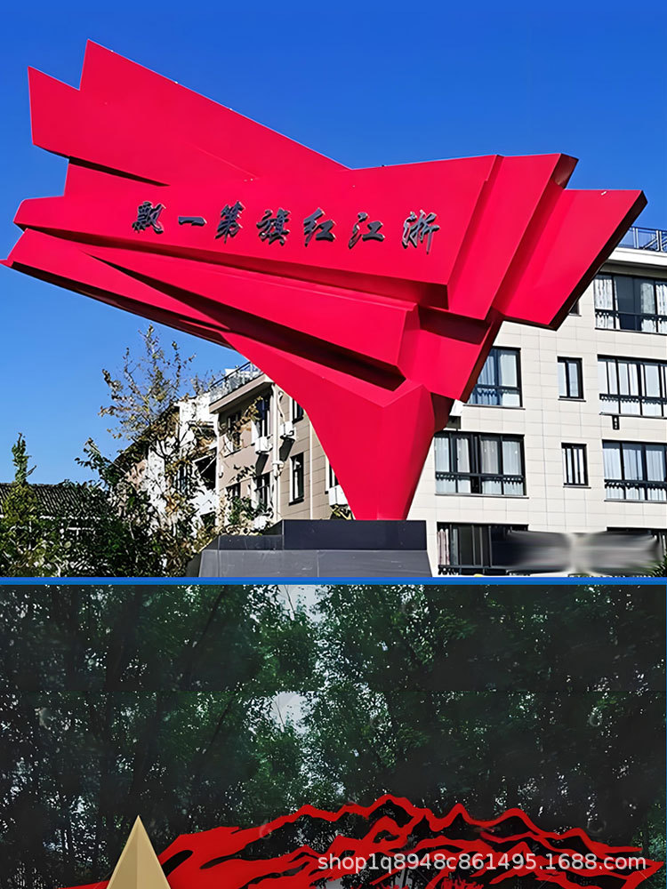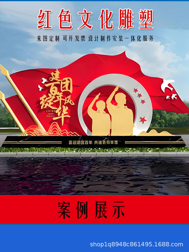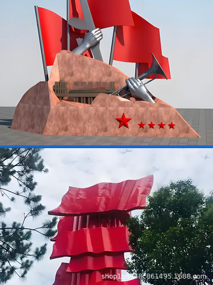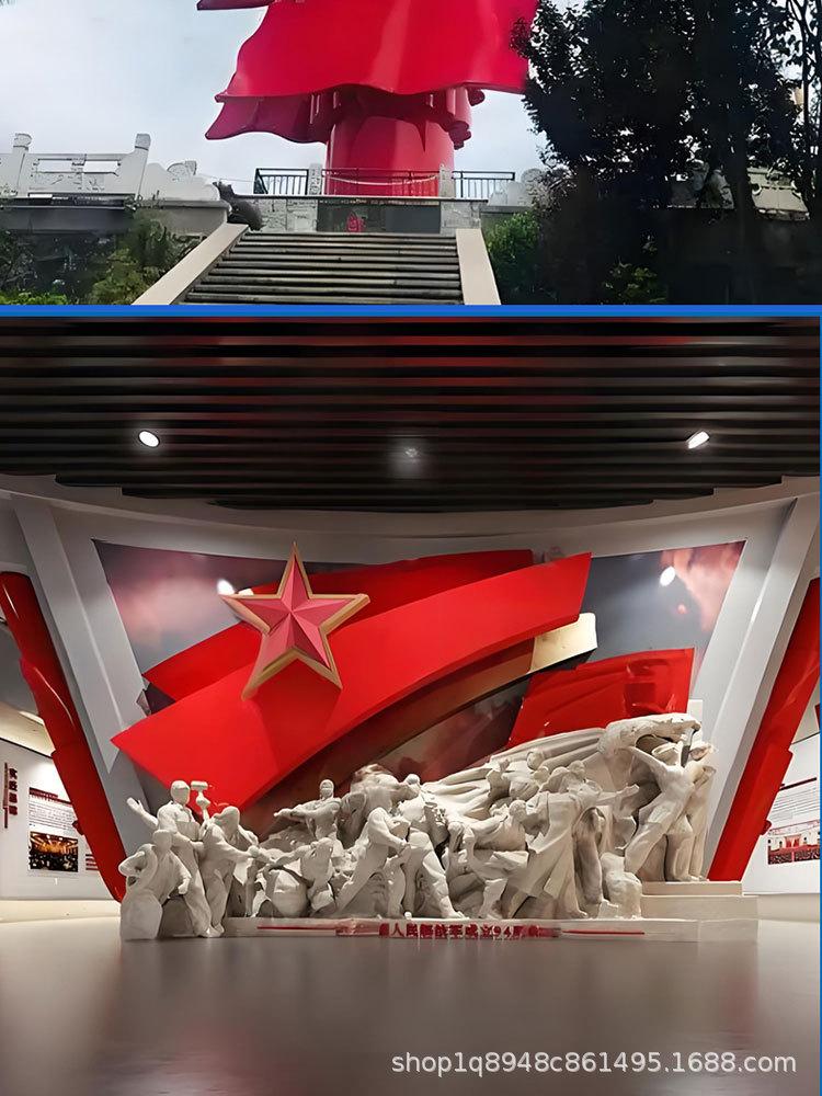 스테인리스 스틸 레드 컬러 문화 테마 조각상, 야외 대형 유리섬유 혁명적 경관 광장 장식품스토어 가기