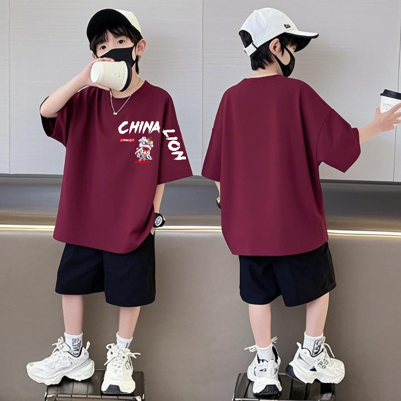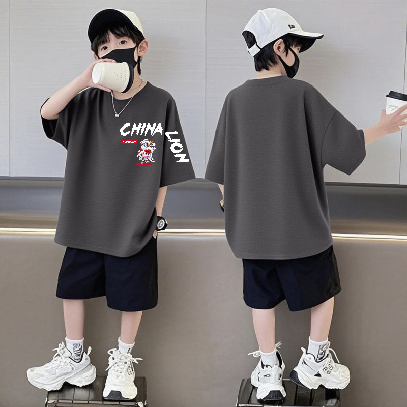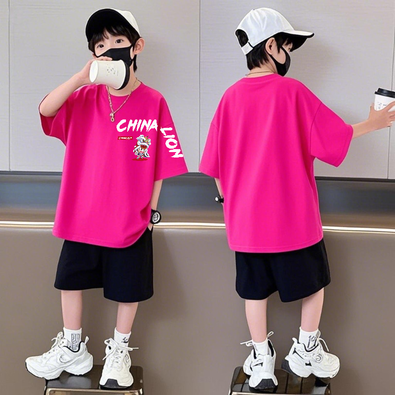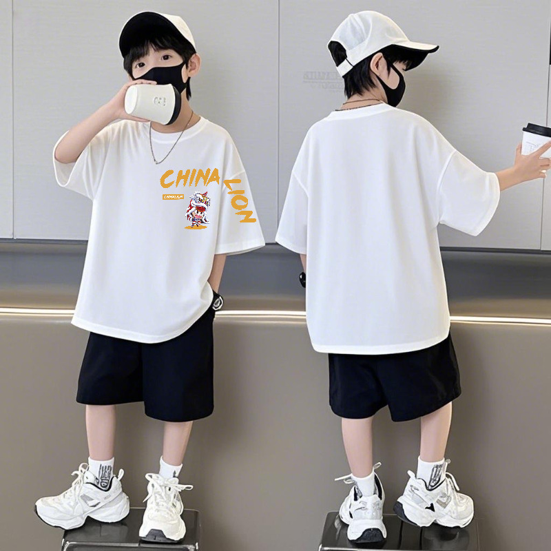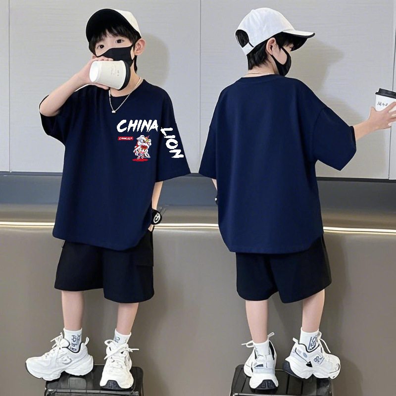순수 코튼 반팔 반바지 소년 정장 여름 느슨한 스포츠 농구 유니폼 중대형 어린이 스타일 캐주얼 투피스 세트