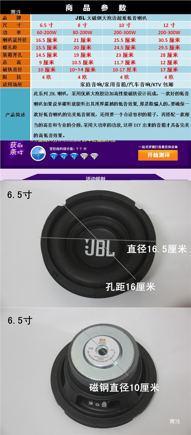 충격적인 중저음 6.5인치 8인치 10inch 12inch JBL 서브우퍼 스피커 자동차 개조 자동차 스피커스토어 가기