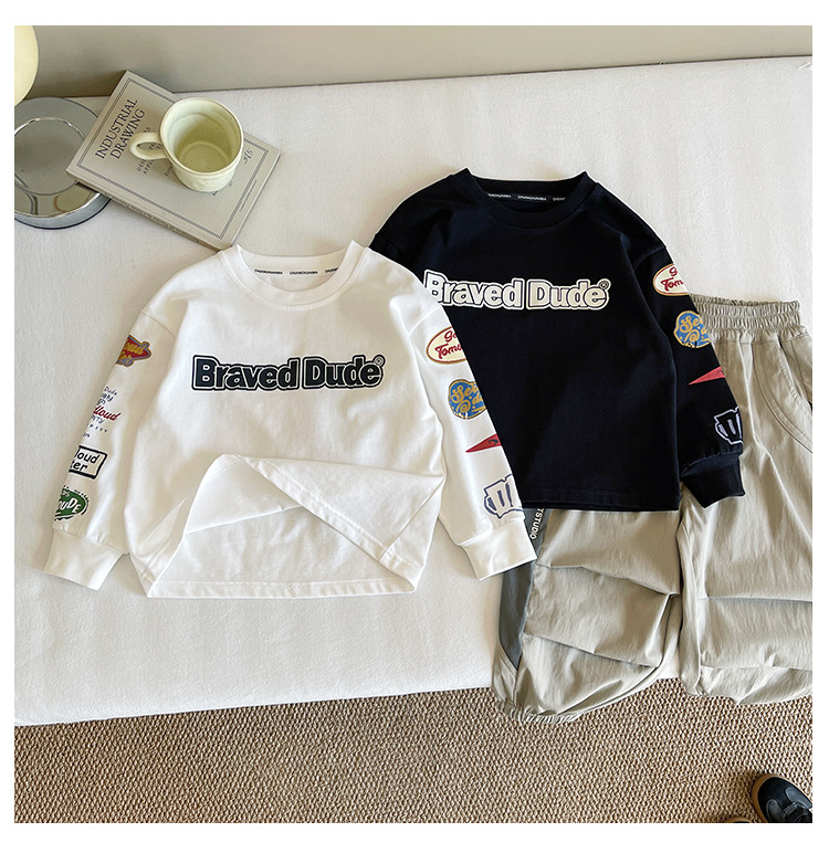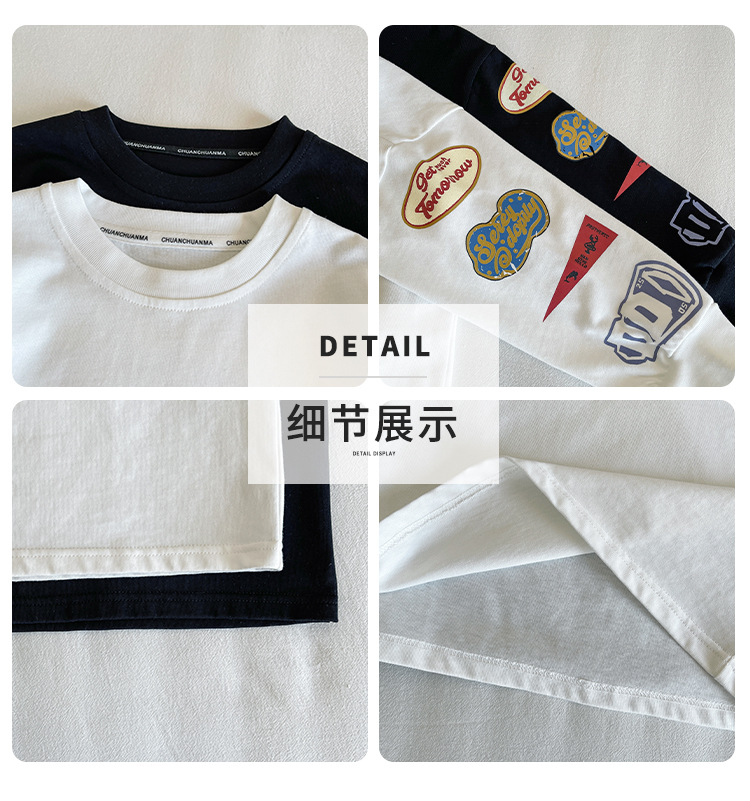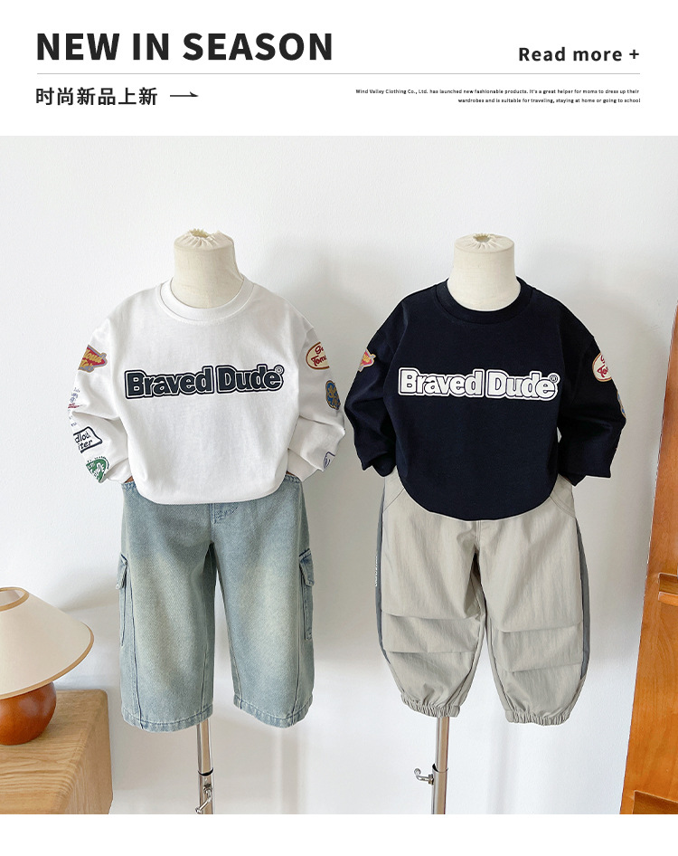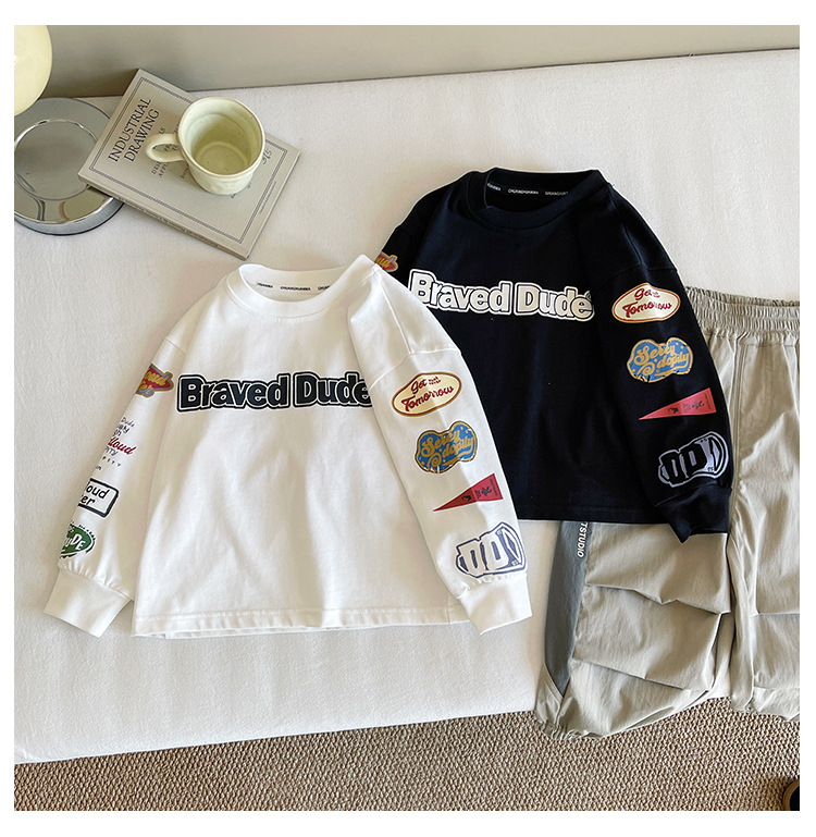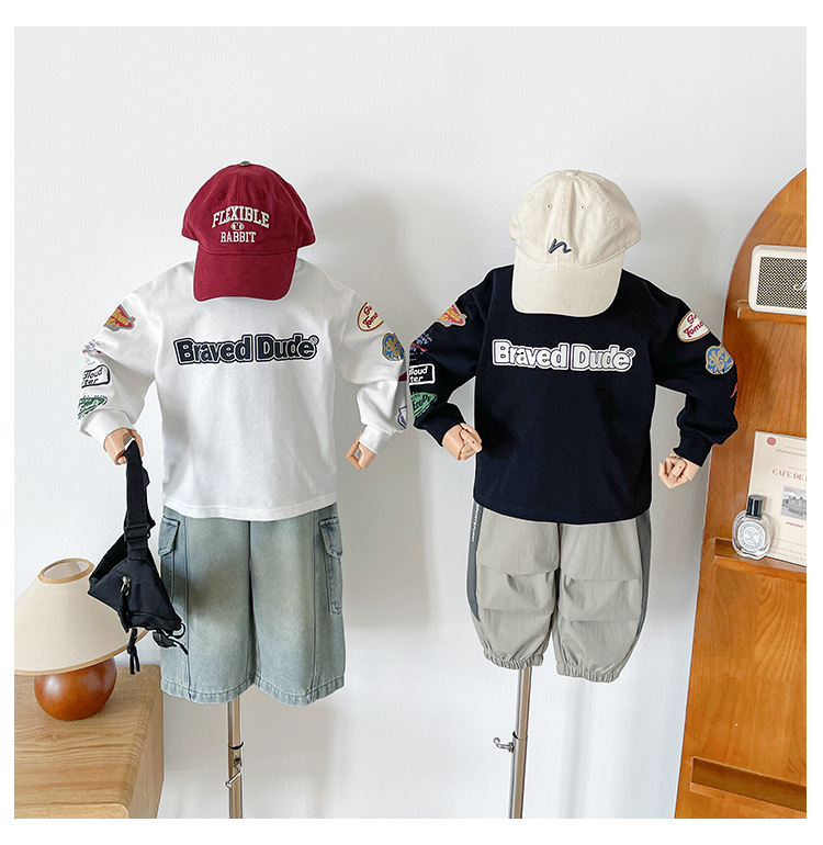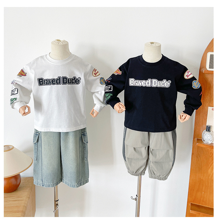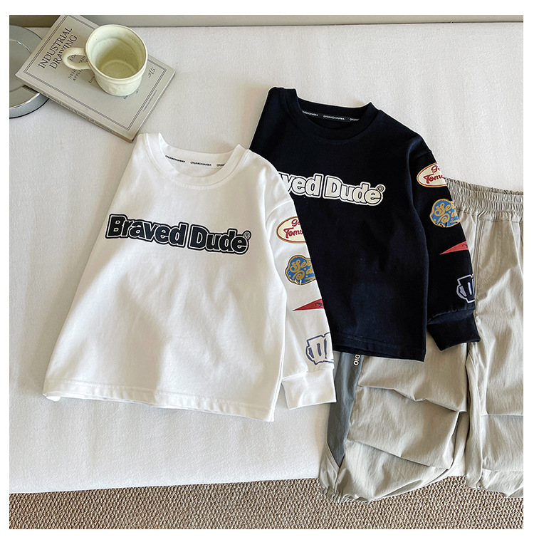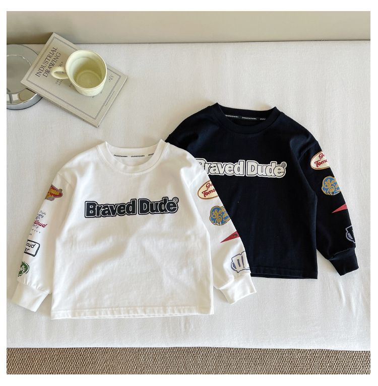 Nausicaa of the Valley 2025 새로운 가을 아동복 아동 한국 스타일 트렌디 쿨 프린트 티셔츠 소년 다재다능하고 잘 생긴 바닥 셔츠스토어 가기
