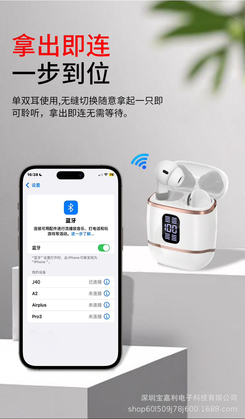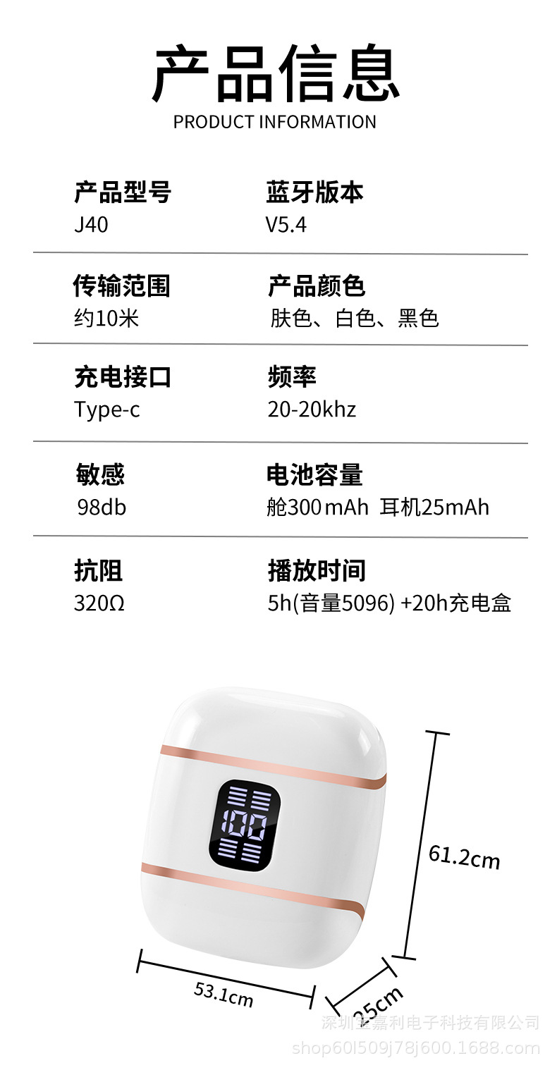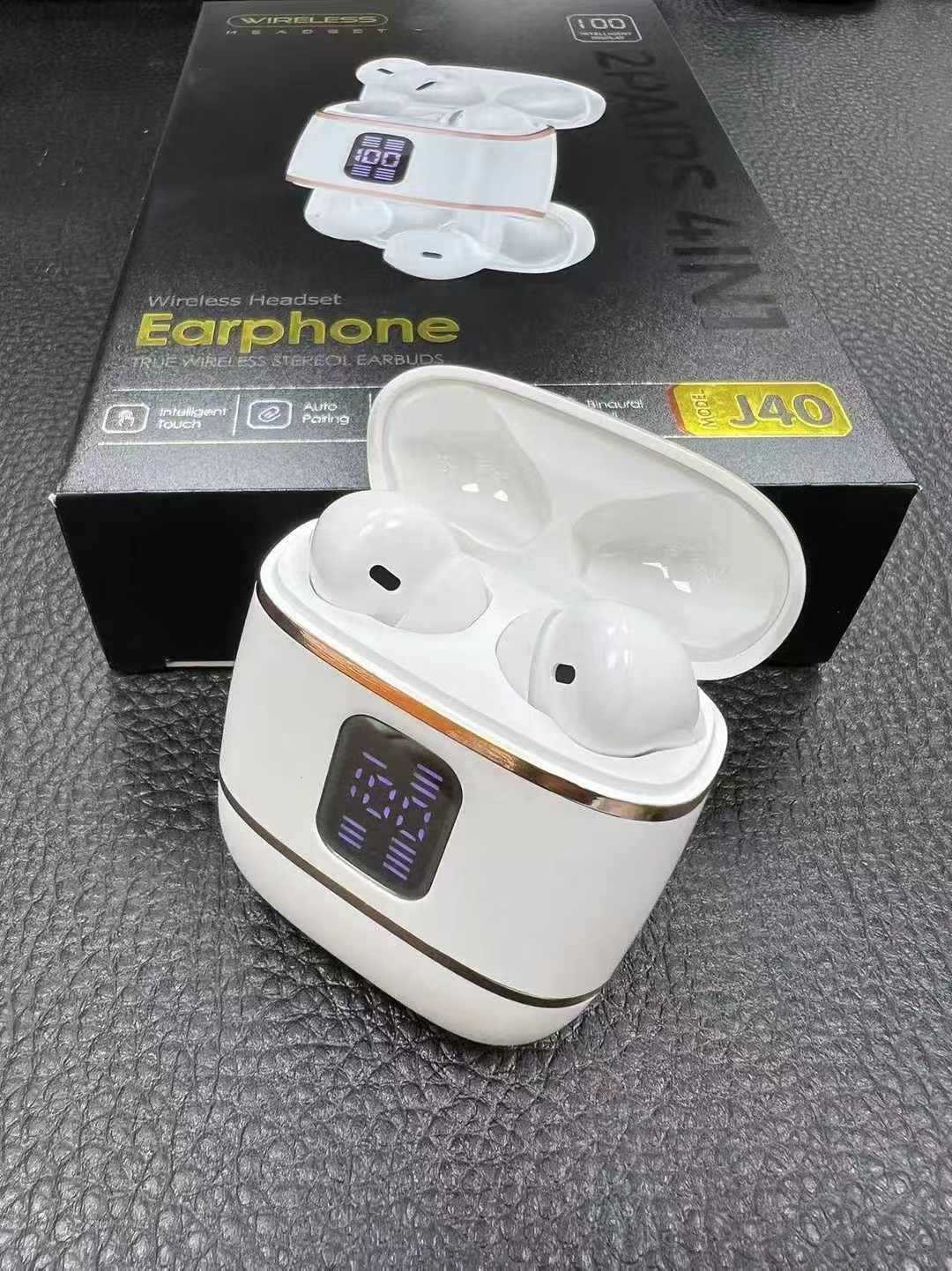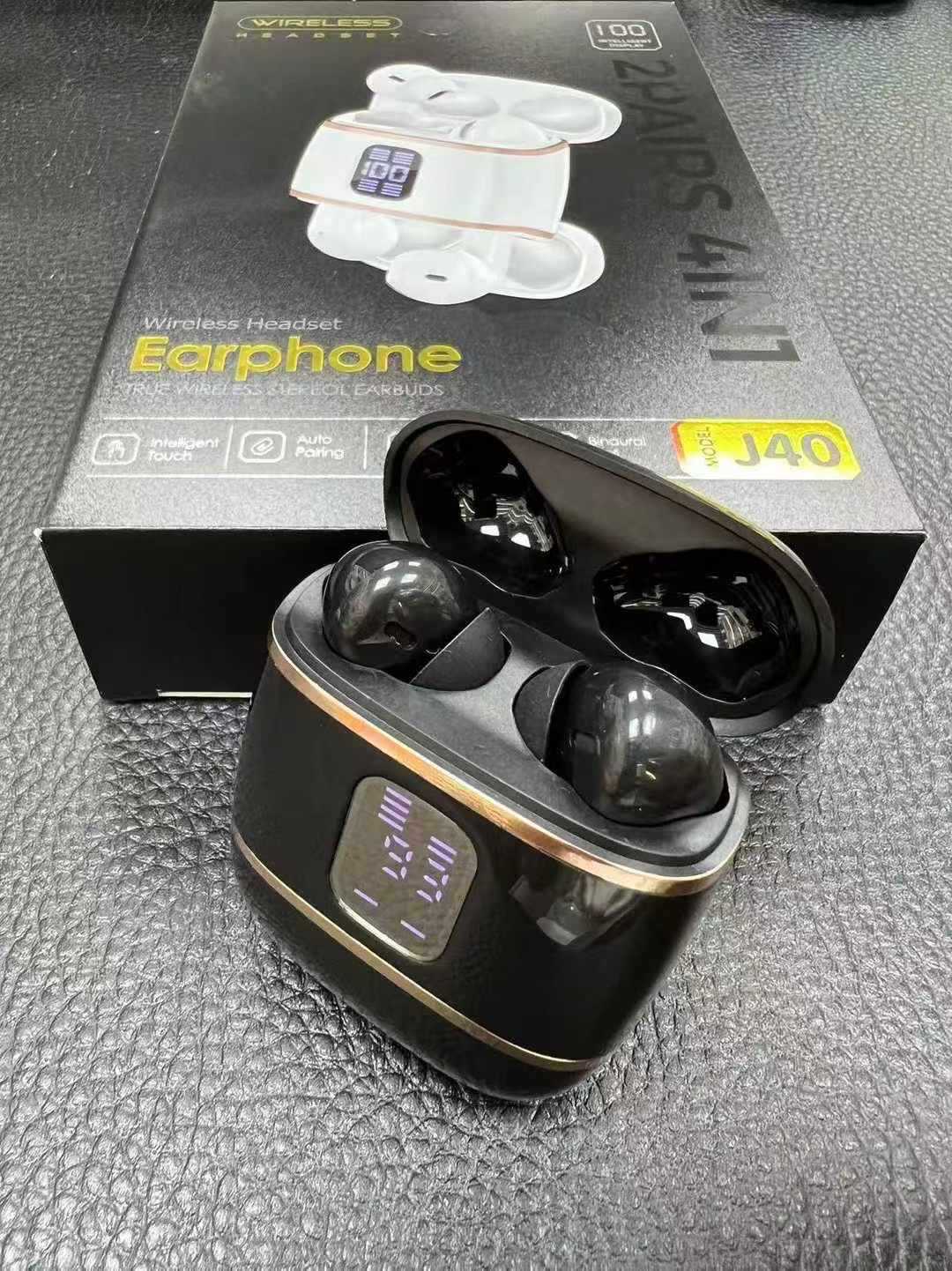 국경 간 인기 J40 블루투스 헤드셋 TWS 무선 귀 장착형 초장기 배터리 수명 디지털 디스플레이 전원 스테레오 4 헤드셋