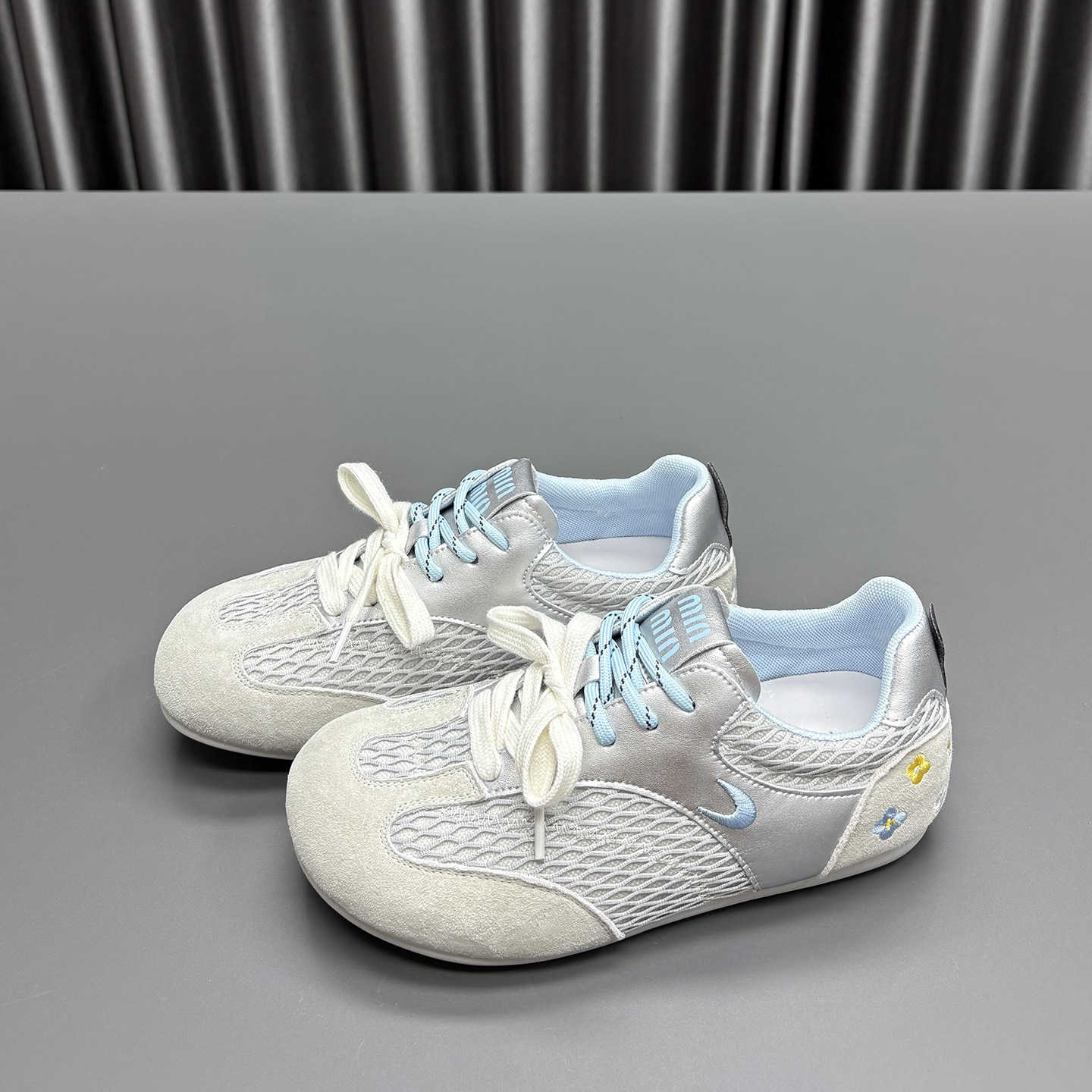여성을위한 메쉬 육군 훈련 신발 2025 가을 새로운 둥근 발가락 두꺼운 밑창 캐주얼 편안한 다목적 색상 일치 스포츠 신발 유행