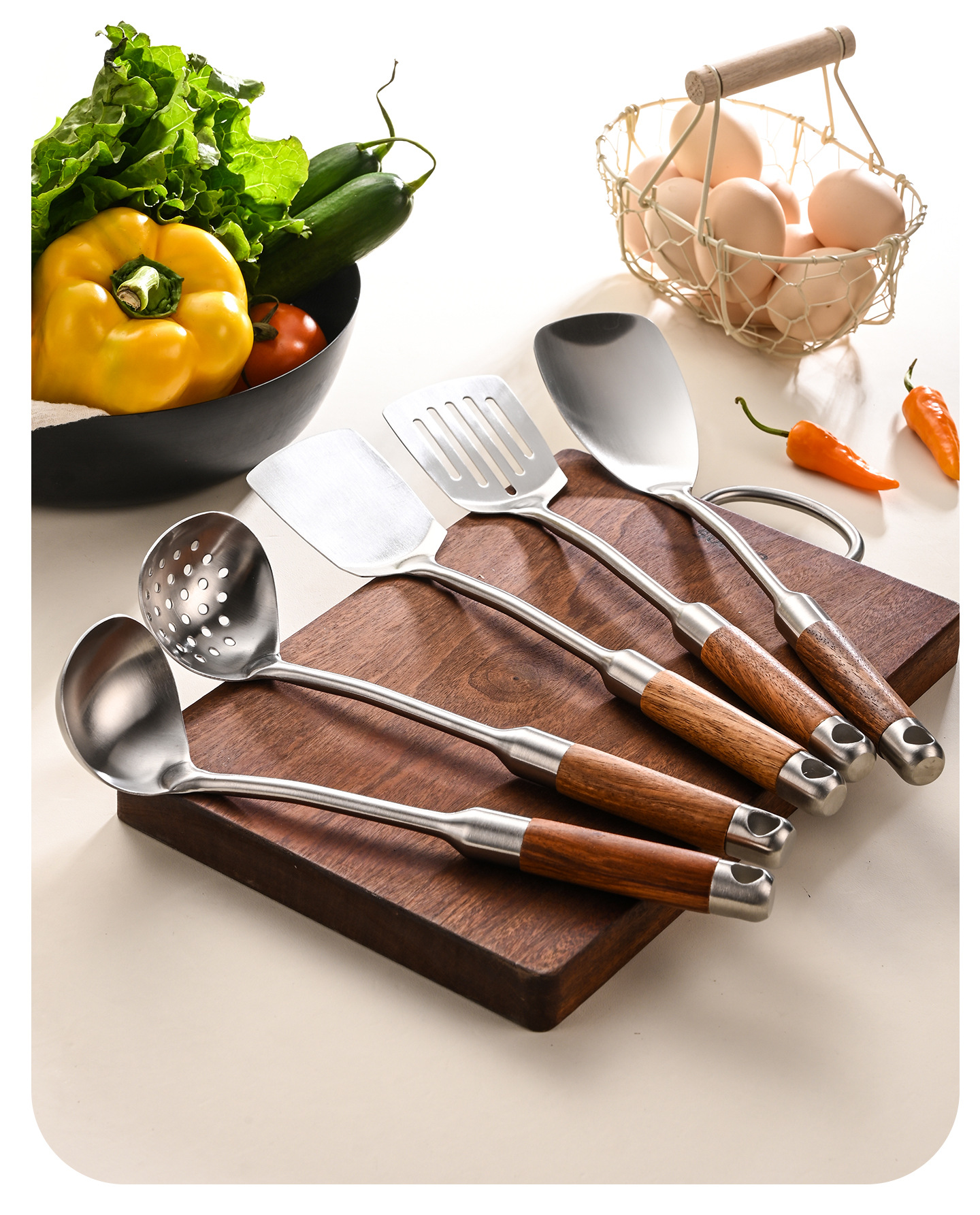 316 스테인레스 스틸 버섯 주걱 로즈 우드 주걱 주방 용품 가정용 요리 냄비 주걱 프라이팬 스푼 호텔 용품