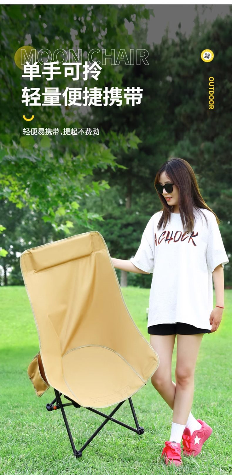 • 업그레이드된 3단 조절 + 탈부착식 발판 - 카키색 '누워서 앉을 수 있는 점심시간'