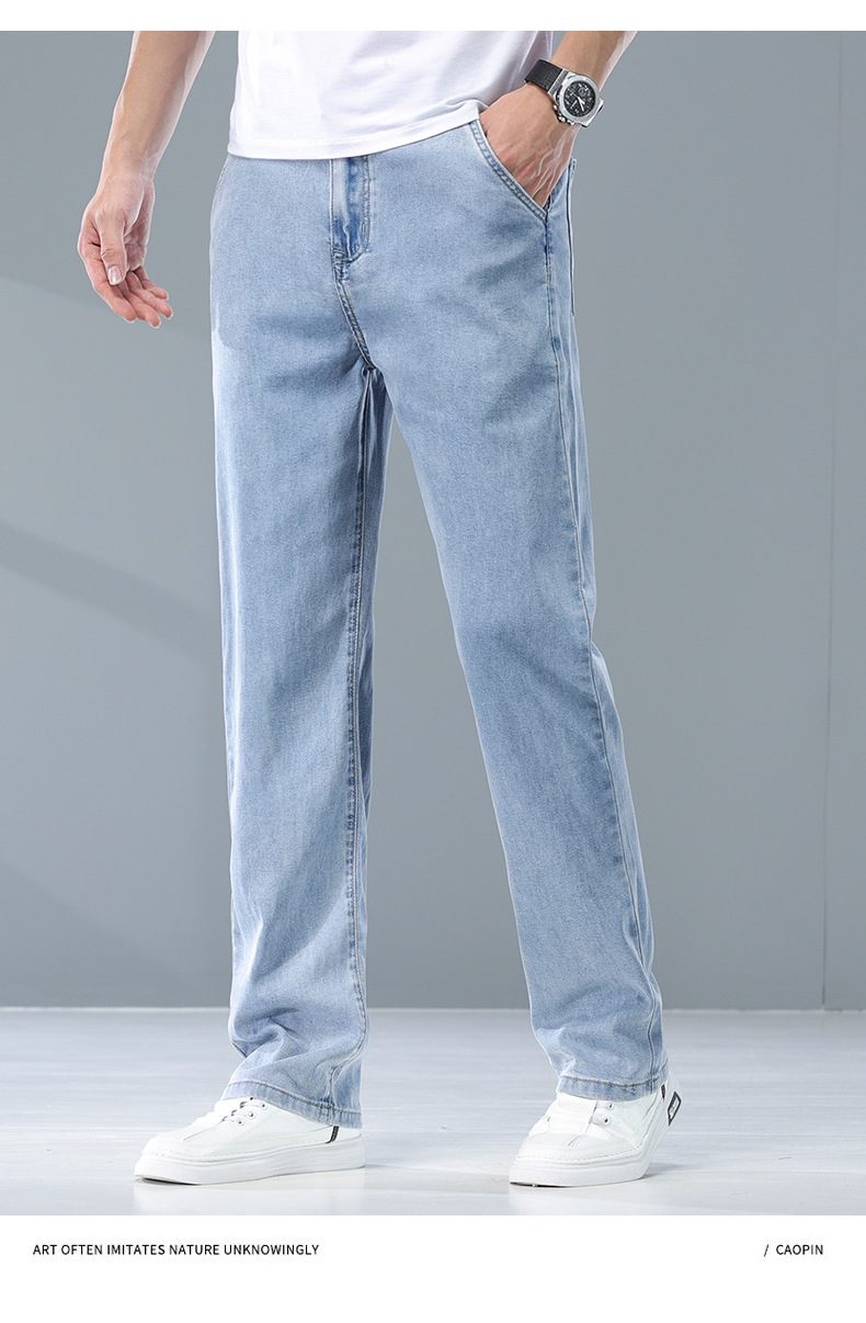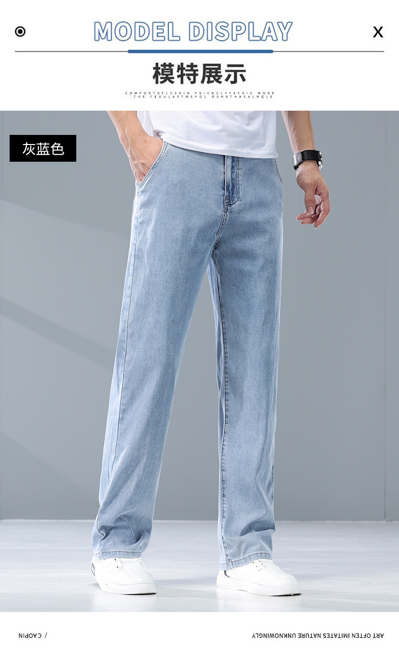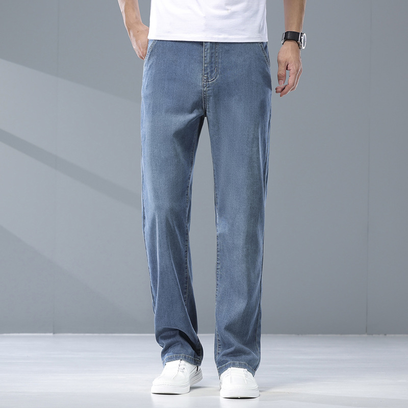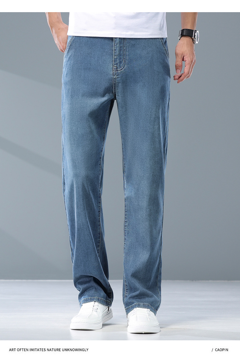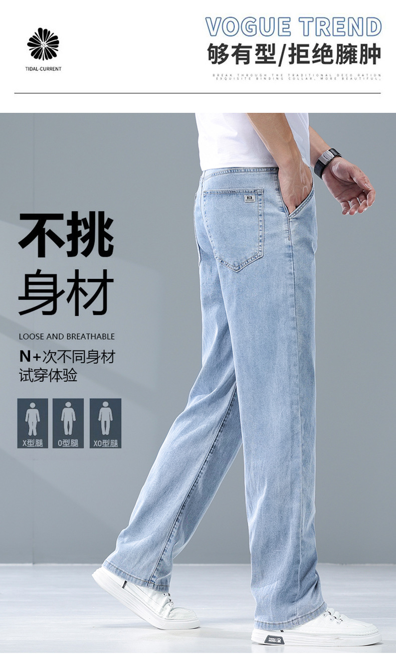 여름 리오셀 비즈니스 청바지 남성 패션 루즈 스트레이트 와이드 레그 청바지 남성 트렌디 브랜드 남성 바지스토어 가기