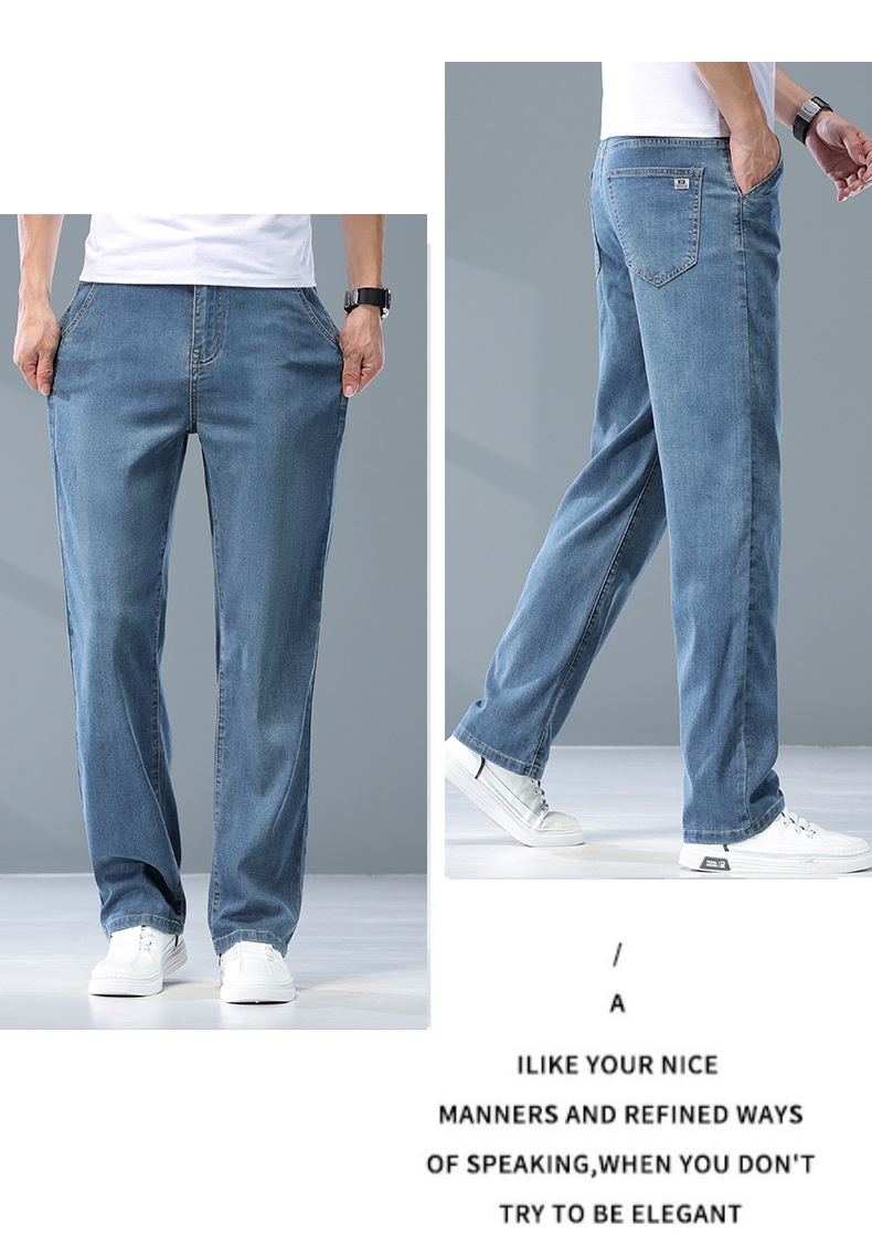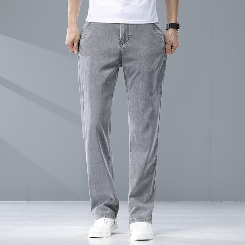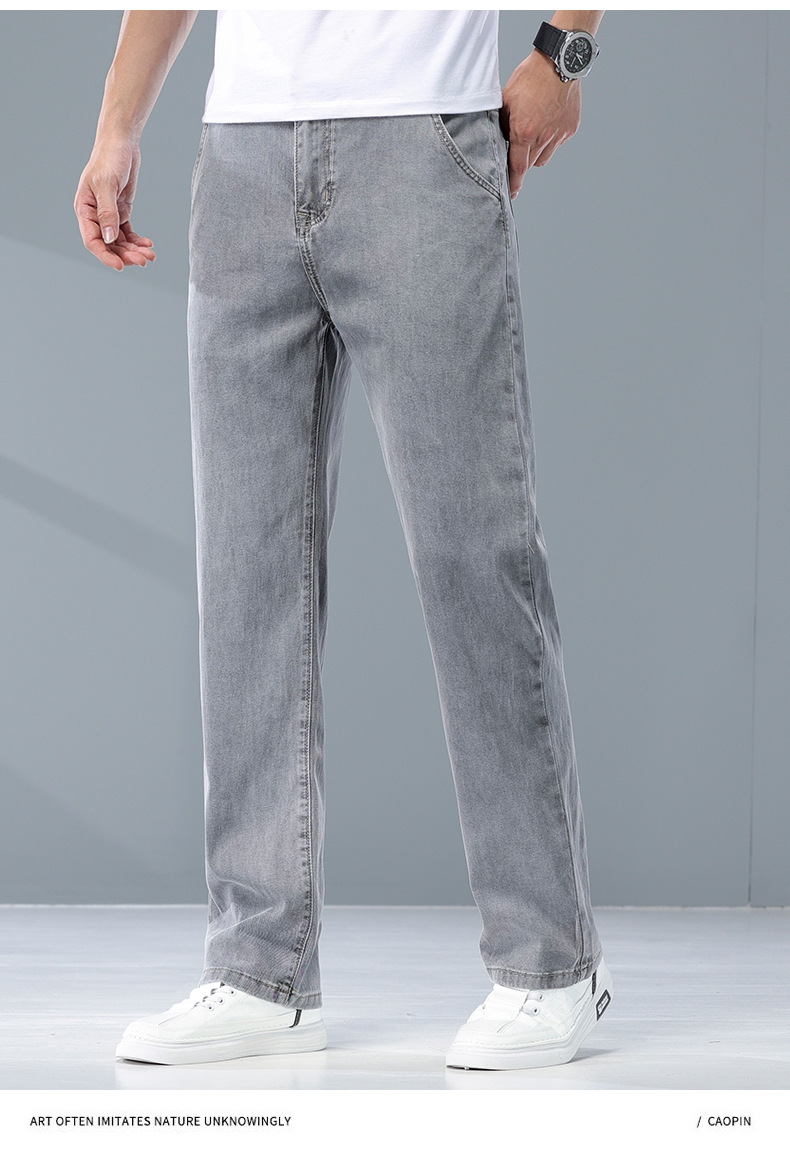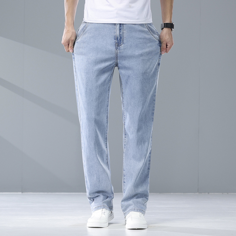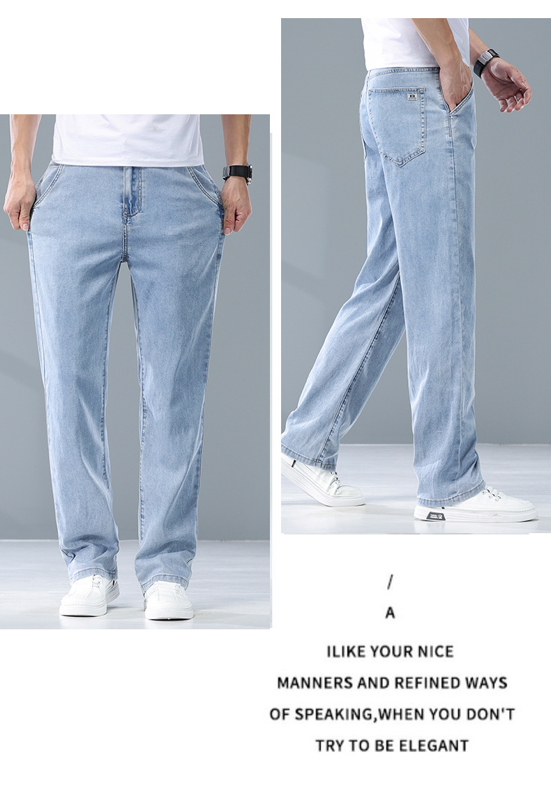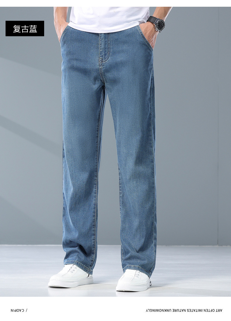 여름 리오셀 비즈니스 청바지 남성 패션 루즈 스트레이트 와이드 레그 청바지 남성 트렌디 브랜드 남성 바지스토어 가기