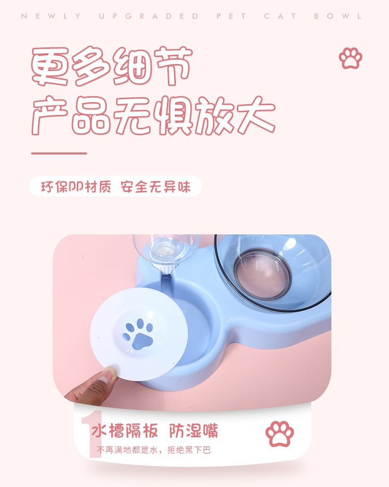 【产品特点】:底托防滑、猫碗处加厚设计、吃饭更悠哉、不再被打翻