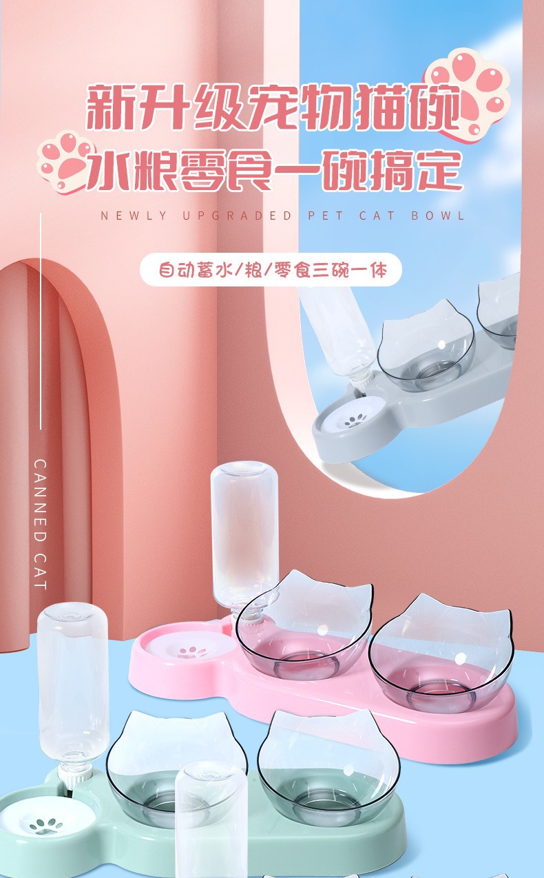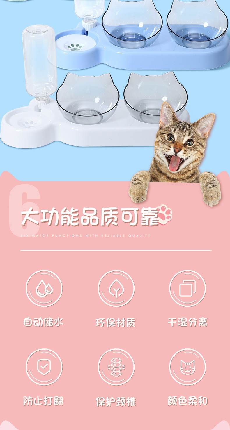 국경 간 애완 동물 고양이 그릇 더블 그릇 고양이 용품 고양이 먹이 그릇 식수 그릇 애완 동물 그릇 개 그릇 목 보호 3 목적 그릇 도매