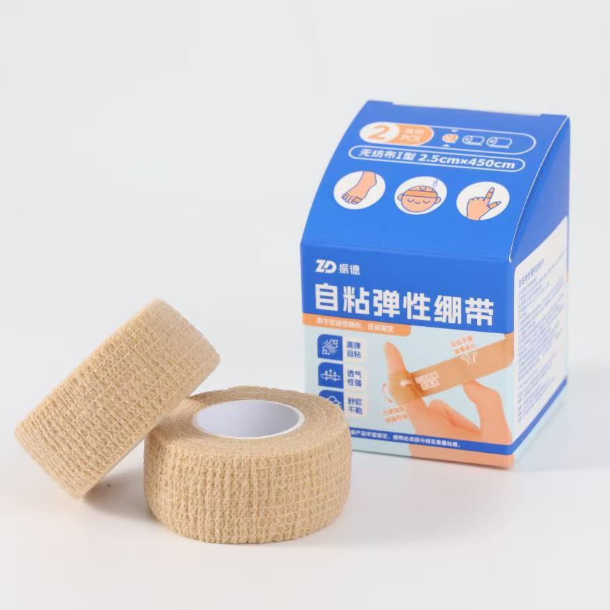 • Zhende 자가 접착 탄력 붕대 (부직포 유형 I, 피부색, 천연 고무) 2.5cm×450cm 2 롤/박스--1 박스