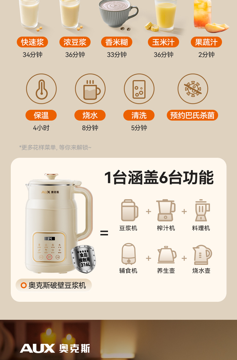 오크스 두유기 가정용 완전 자동 다기능 1~5인용 필터링 없이 조리 가능한 가벼운 벽파괴 조리기스토어 가기