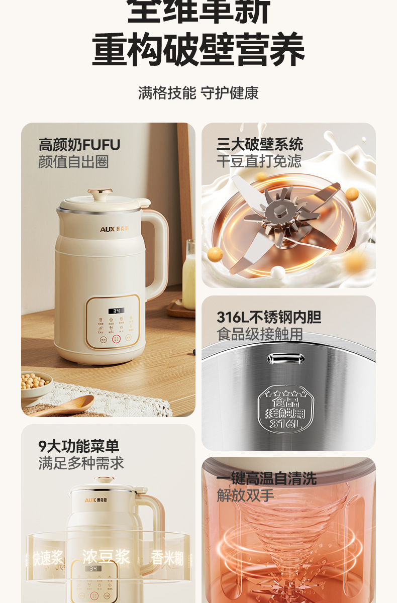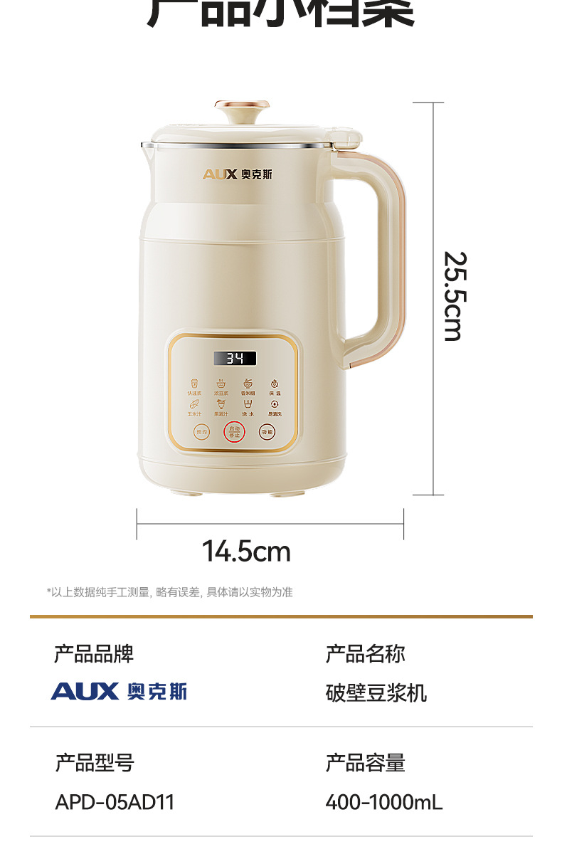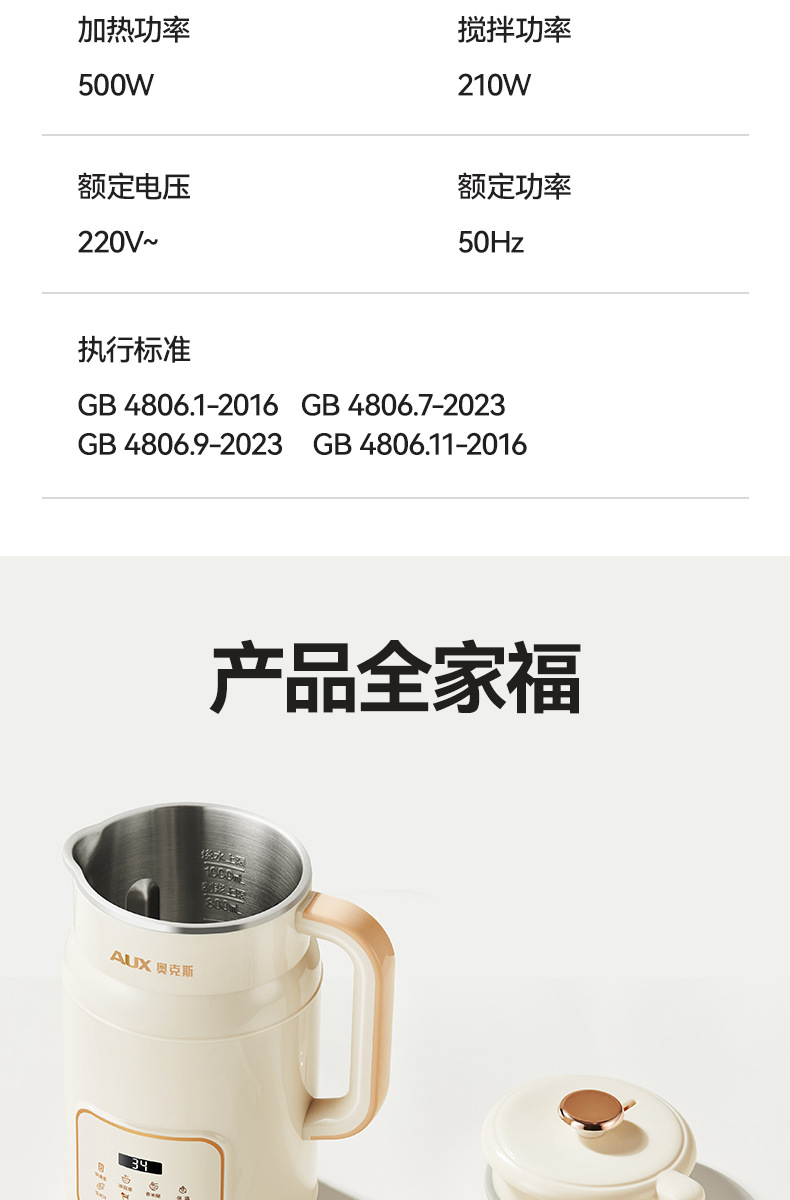 오크스 두유기 가정용 완전 자동 다기능 1~5인용 필터링 없이 조리 가능한 가벼운 벽파괴 조리기