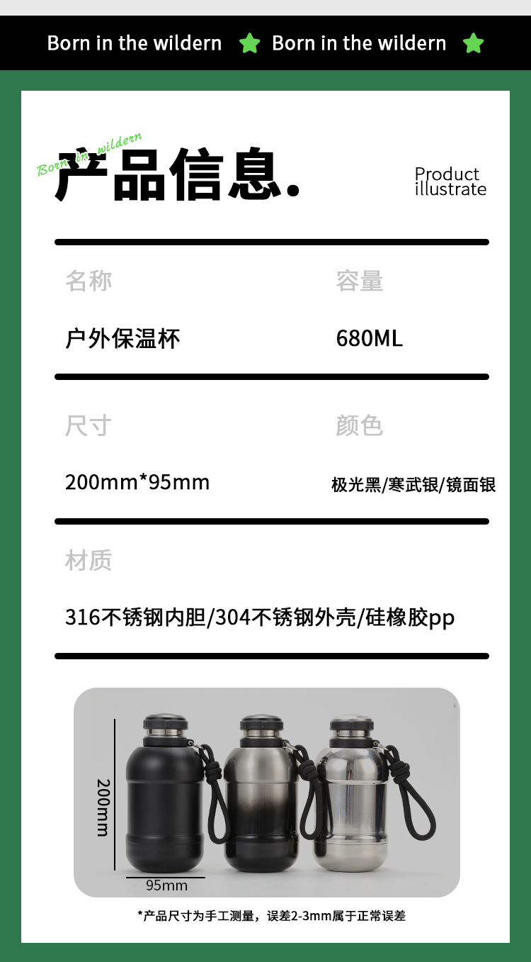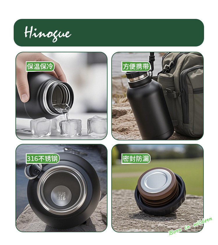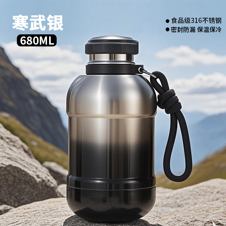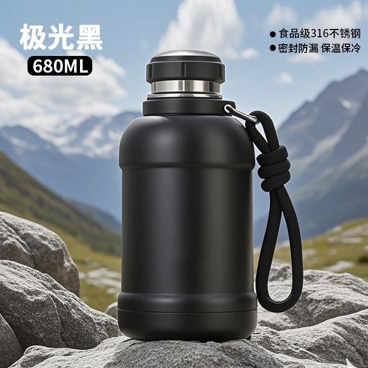 새로운 야외 대용량 남성용 보온병 컵 316 스테인레스 스틸 휴대용 등산 스포츠 워터 컵 진공 단열 주전자