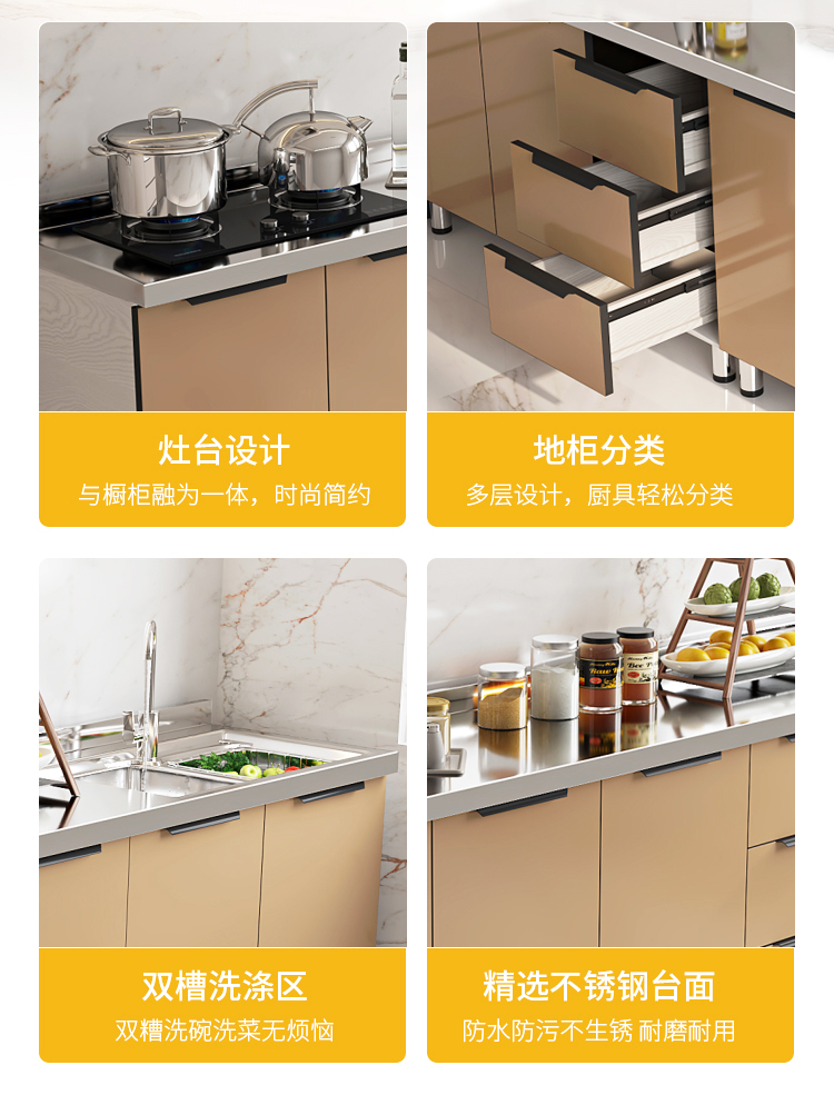 스테인레스 스틸 주방 캐비닛, 스토브 캐비닛, 일체형 가정용 바구니 보관 캐비닛, 경제적인 주방 보관 캐비닛, 간단한 찬장스토어 가기