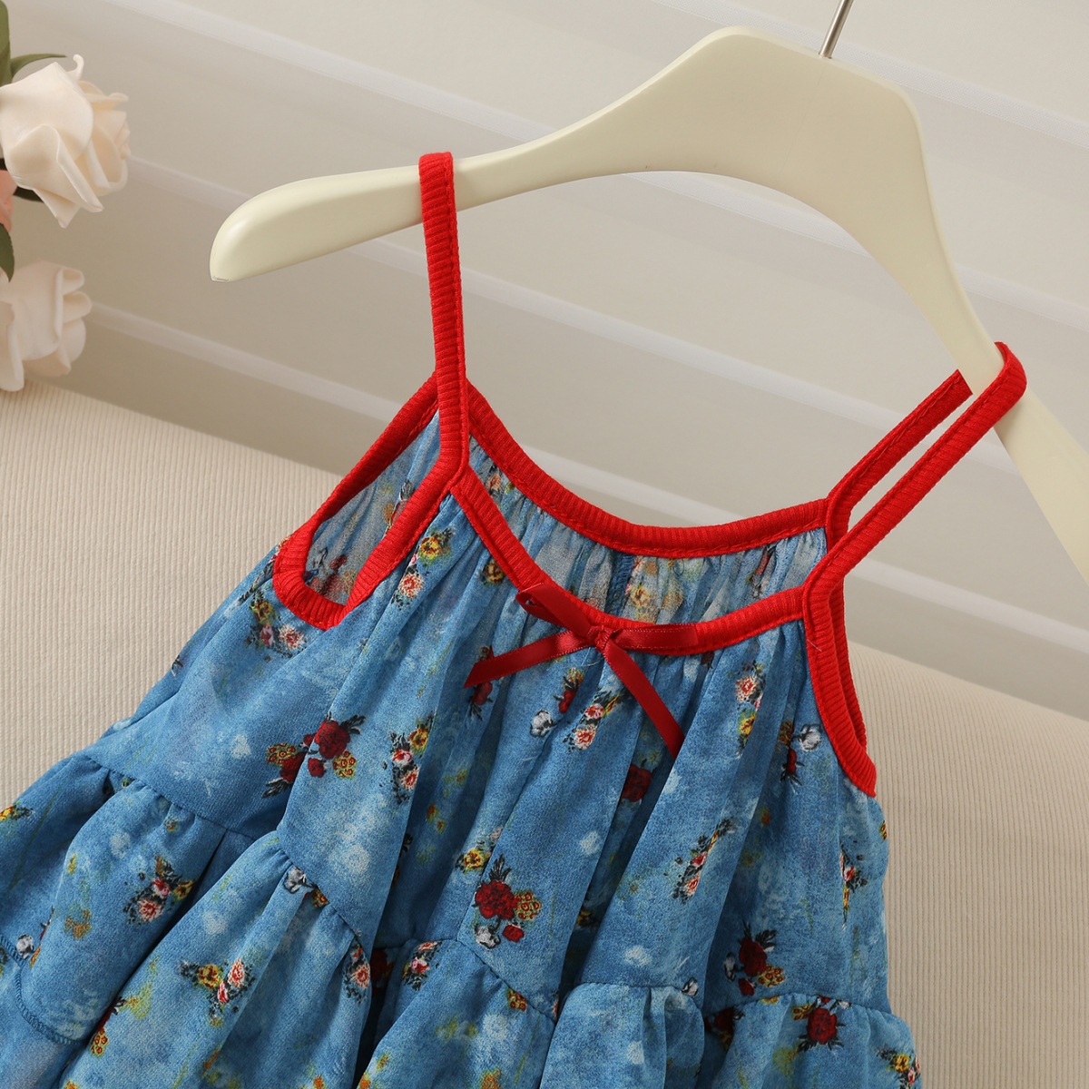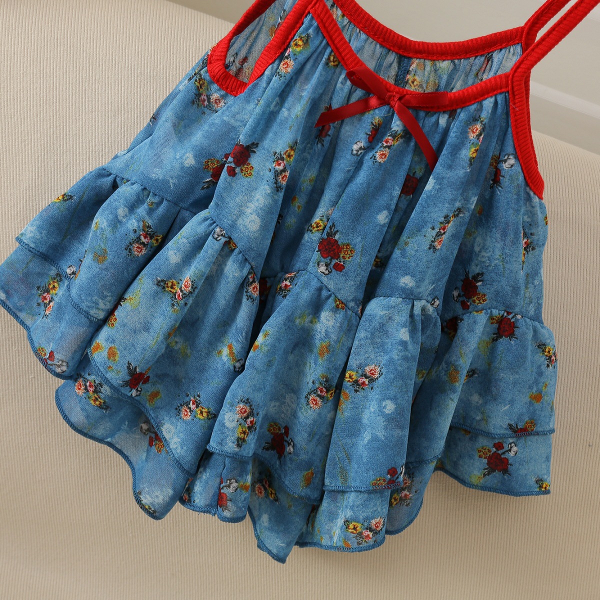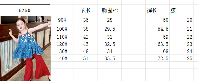 6750 여아 여름 휴가 스타일 서스펜더 새로운 스타일 아동용 베이비 쉬폰 러플 탑 + 부츠컷 팬츠 세트스토어 가기
