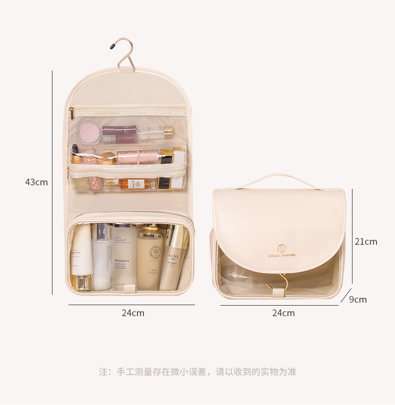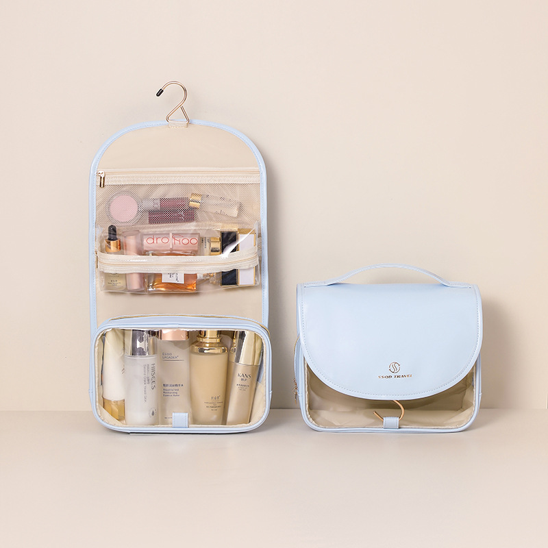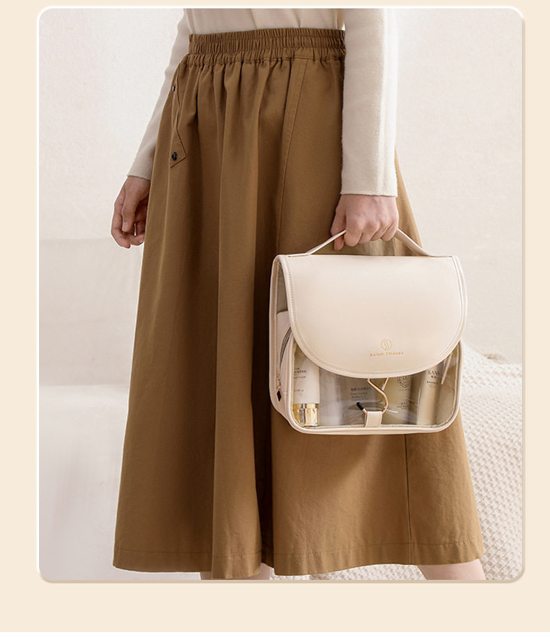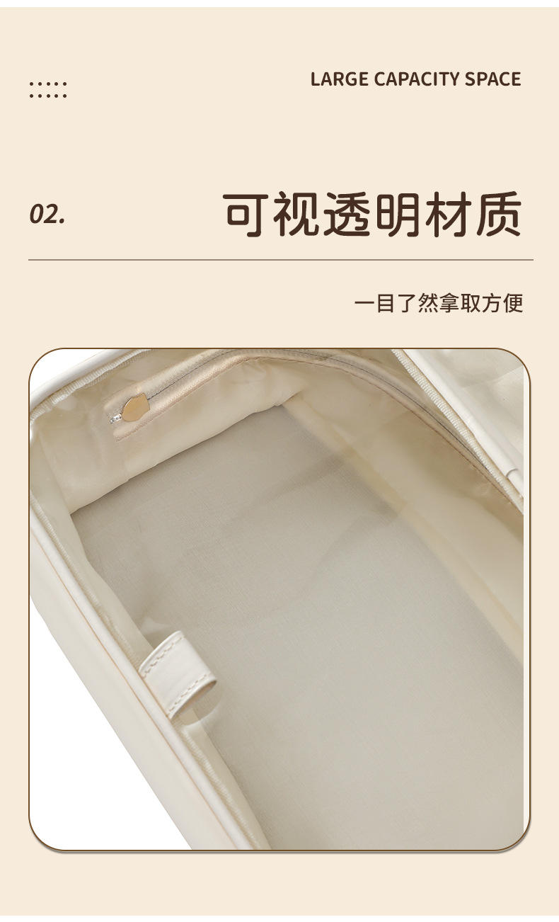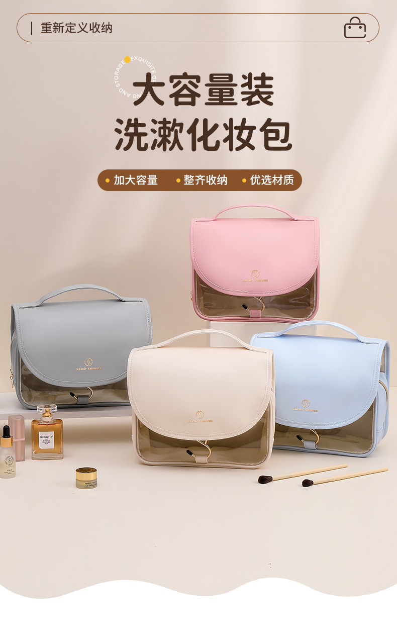 여성을위한 새로운 PU 화장품 가방 대용량 휴대용 화장품 보관 가방 투명 PVC 방수 세면 용품 가방 화장품 가방