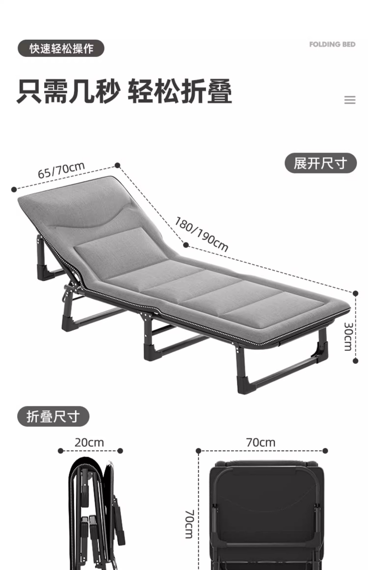 1인용 접이식 침대, 사무실 점심시간 유물, 수면 등받이 의자, 평평하게 늘어놓을 수 있는 병원 동행 침대, 야외 캠프 침대스토어 가기