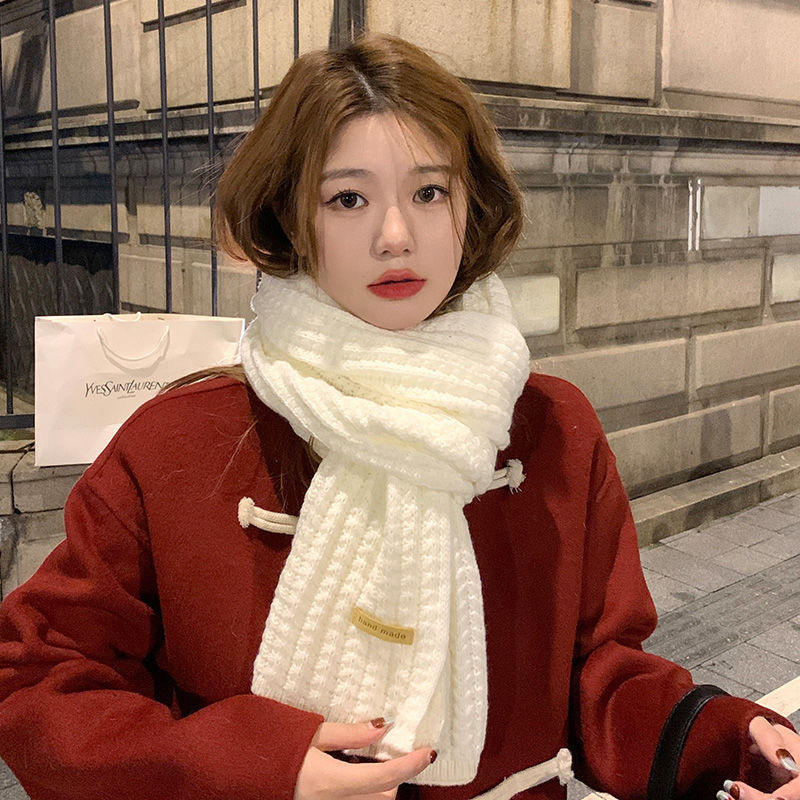 여성을위한 다목적 한국 스타일 니트 울 빨간색 스카프 2024 새로운 겨울 하이 엔드 새해 선물 커플 스카프스토어 가기