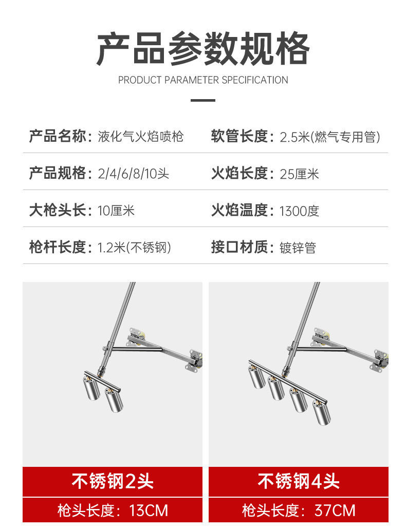농장 소독 화염 소독 총 스테인레스 스틸 멀티 헤드 3 헤드 대형 노즐 액화 가스 고온 돼지 농장 화염 총