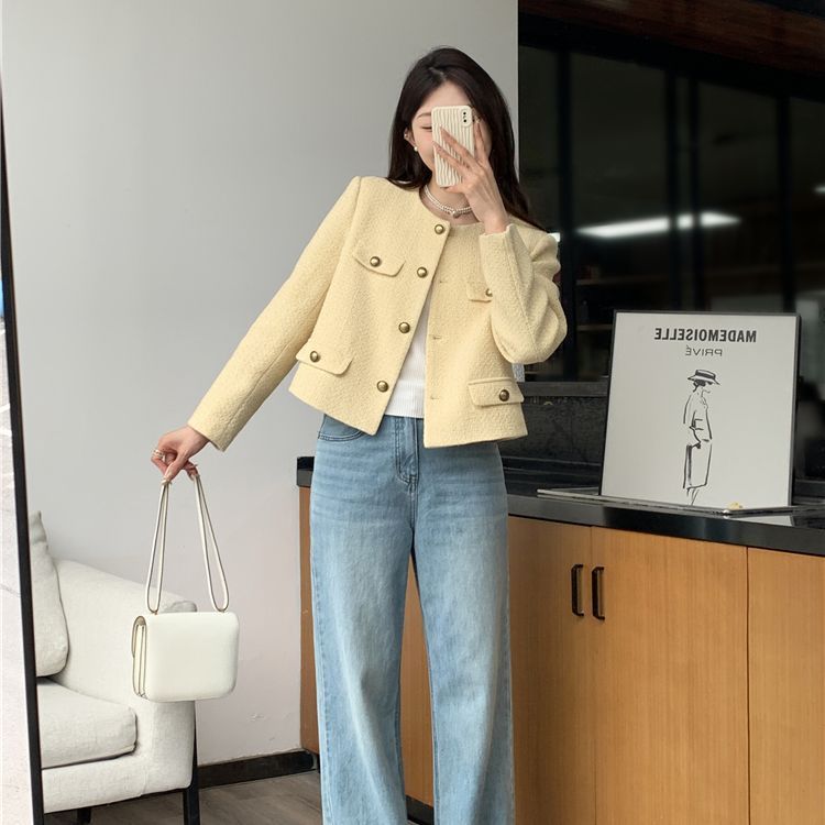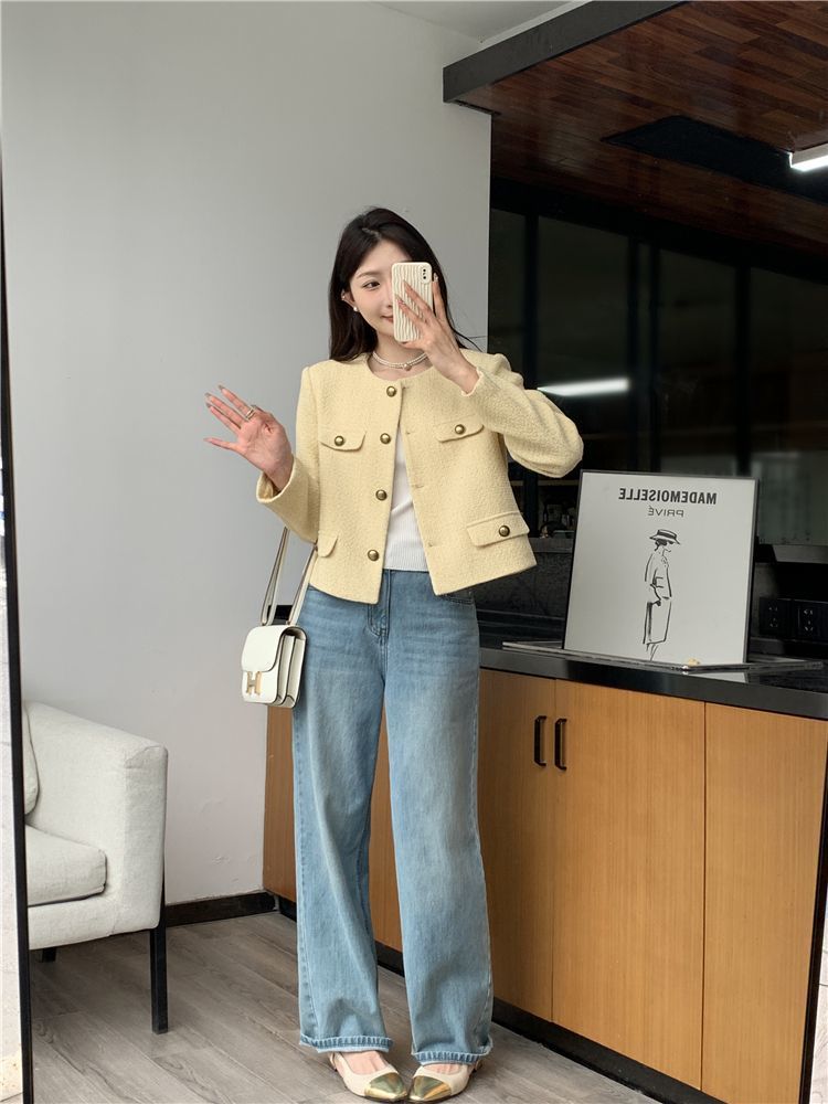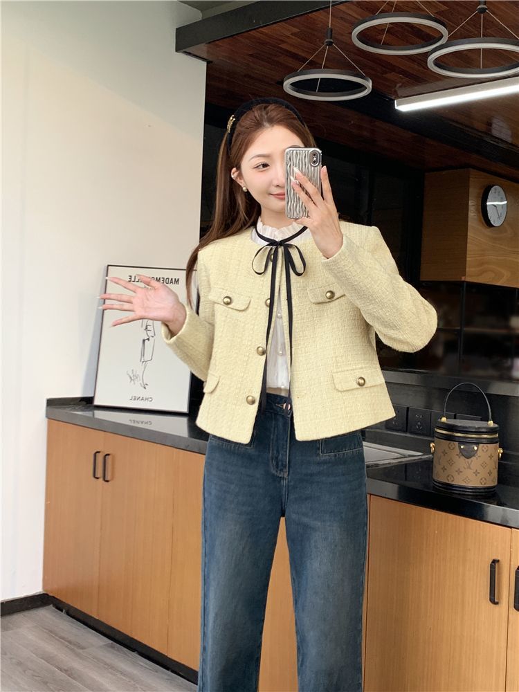 여성을위한 노란색 짧은 스타일 코트 2025 봄 새로운 스타일 하이 엔드 느슨한 다목적 탑 재킷