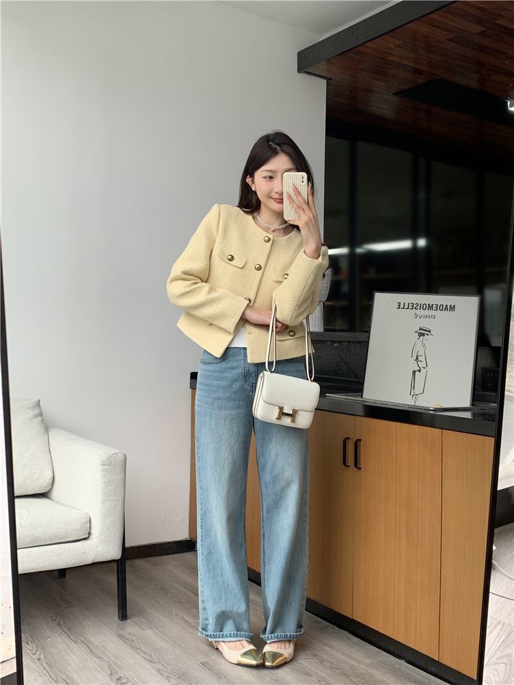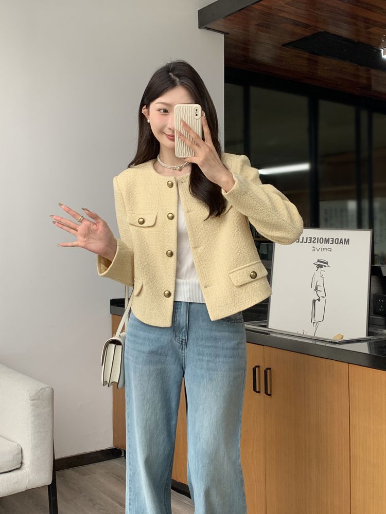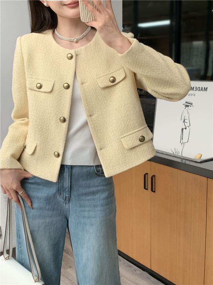 여성을위한 노란색 짧은 스타일 코트 2025 봄 새로운 스타일 하이 엔드 느슨한 다목적 탑 재킷스토어 가기
